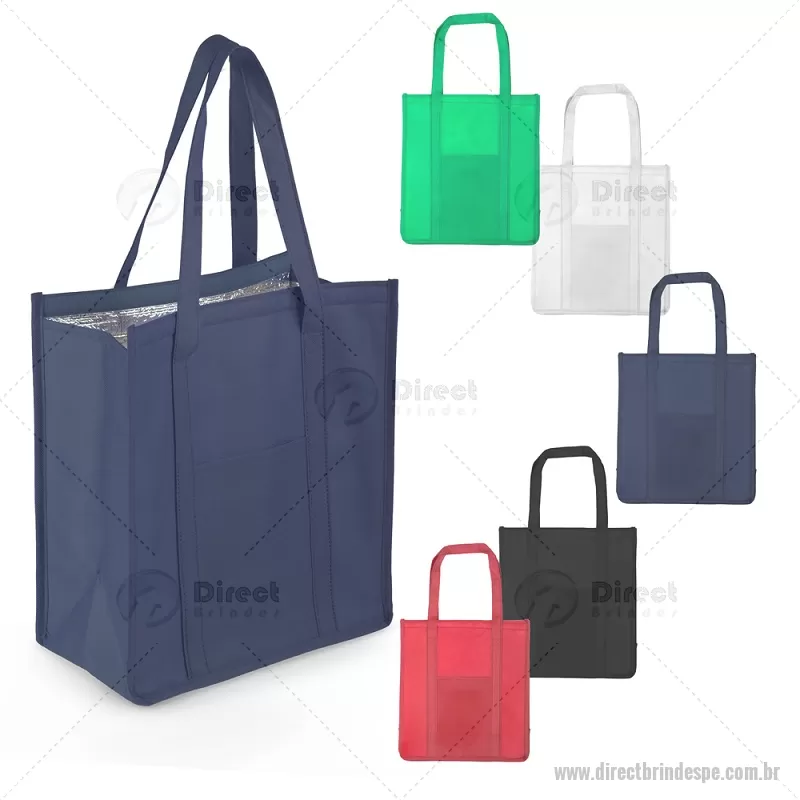 Sacola térmica confeccionada em TNT com gramatura de 80 g/m². Possui interior costurado com revestimento em algodão e folha de alumínio de 2 mm, auxiliando na conservação da temperatura de alimentos e bebidas. Conta com bolso frontal, fechamento em velcro e alça de 50 cm de ponta a ponta, proporcionando praticidade no transporte. - - DRTPEBT118
