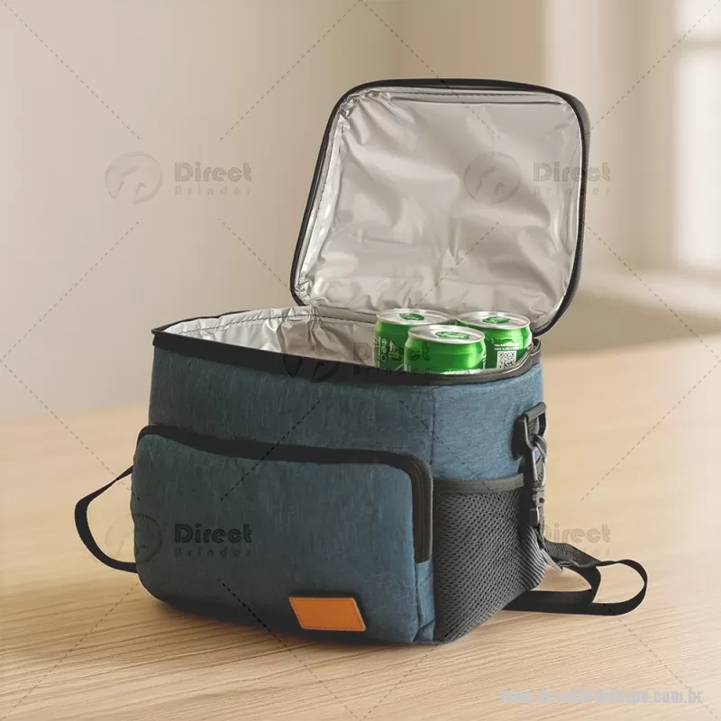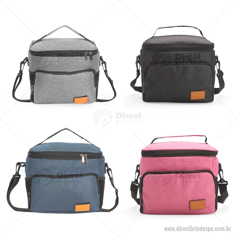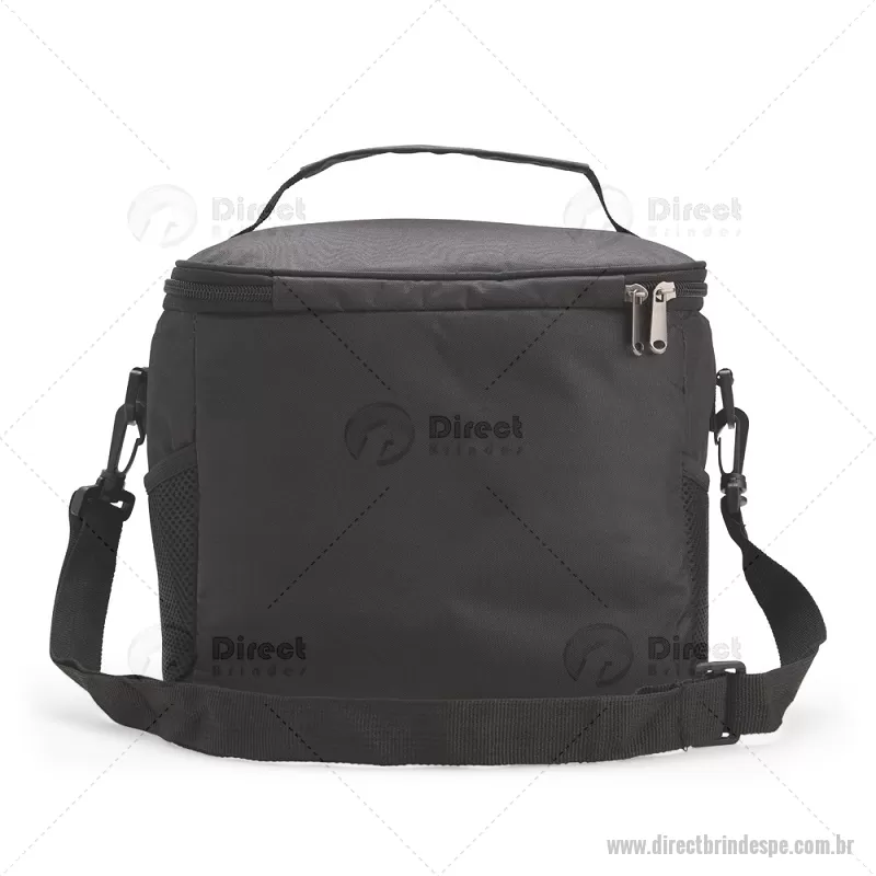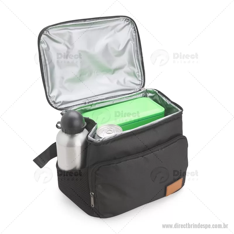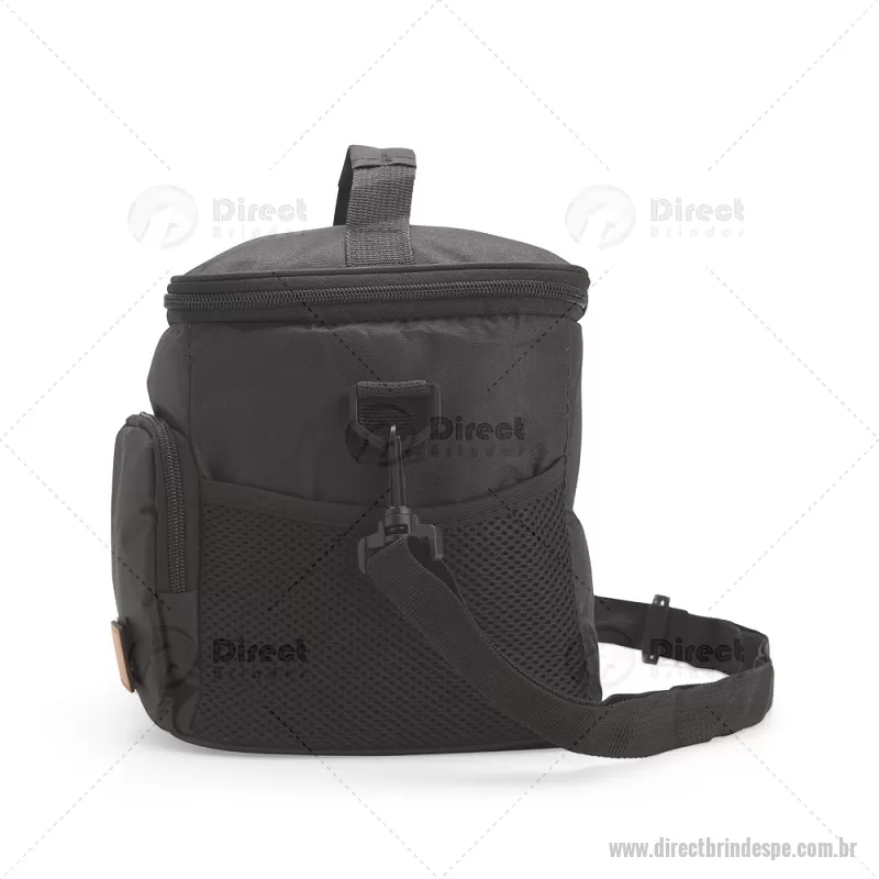 Bolsa térmica de 11 litros feita em Oxford resistente à água, com revestimento interno em PEVA atóxico e fechamento em zíper. Possui bolso frontal com plaquinha em couro sintético, dois bolsos laterais em tela, alça superior em nylon e alça transversal removível e ajustável. Prática e funcional para uso diário. - - DRTPEBT101