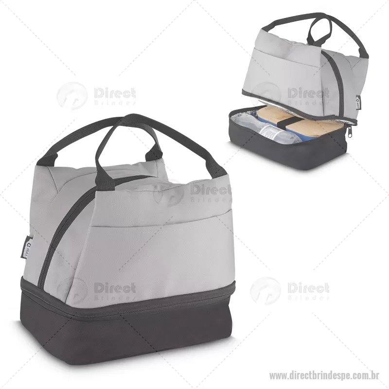 Bolsa térmica 7litros em tecido PET Reciclado com 2 compartimentos térmicos costurados, bolso frontal e alça de mão. Dimensão Produto: 21x24x15cm (AxLxP) Peso do Produto: 0,130kg Volume: 7L - - DRTPEBT094