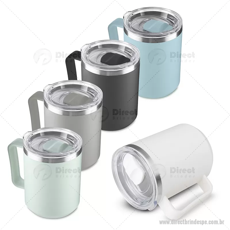 Caneca com capacidade de 450 ml, produzida em plástico PP com interior em inox 304, auxiliando na conservação da temperatura do líquido. Possui alça ergonômica e tampa plástica com vedação de encaixe, proporcionando praticidade e conforto no uso diário. - - DRTPECAN107