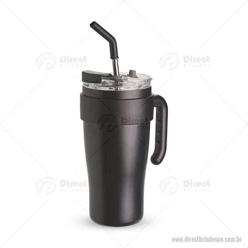 Caneca térmica de 800 ml em inox, com parede dupla que mantém suas bebidas na temperatura ideal por muito mais tempo. Possui alça ergonômica em plástico, garantindo conforto e firmeza no uso. Conta com tampa rosqueável com vedação, protetor de bocal e acesso para canudo com tampa em silicone, oferecendo mais praticidade e segurança. Acompanha canudo em inox com ponta de silicone removível, proporcionando uma experiência mais confortável ao beber. Perfeita para quem busca alta capacidade, funcionalidade e um design moderno para o dia a dia. Altura : 21,5 cm x Largura : 14,5 cm x Circunferência : 32 cm Peso aproximado (g): 437 - - DRTPECAN104