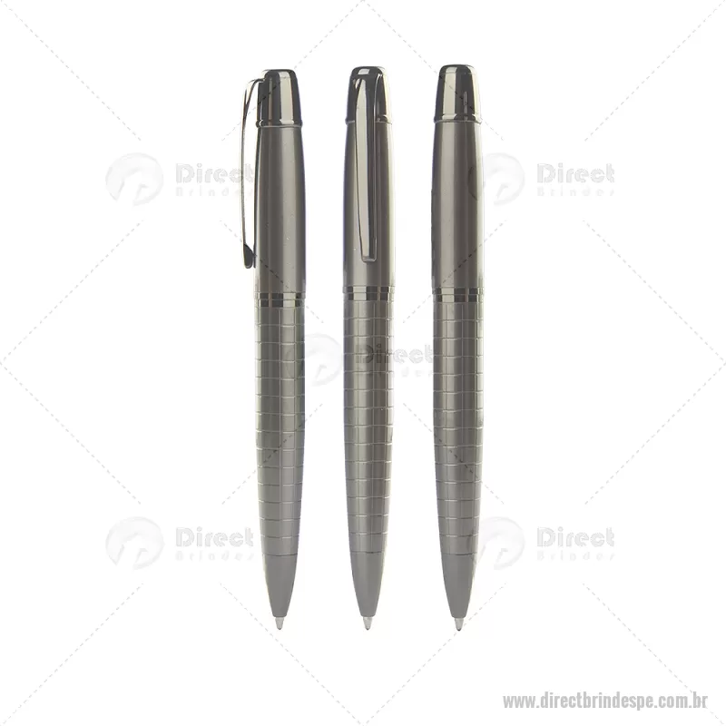 Caneta metálica esferográfica twist com escrita em azul. Dimensão Produto: 14,0xø1,3cm (AxøD) Peso do Produto: 0,033kg - - DRTPECMT170