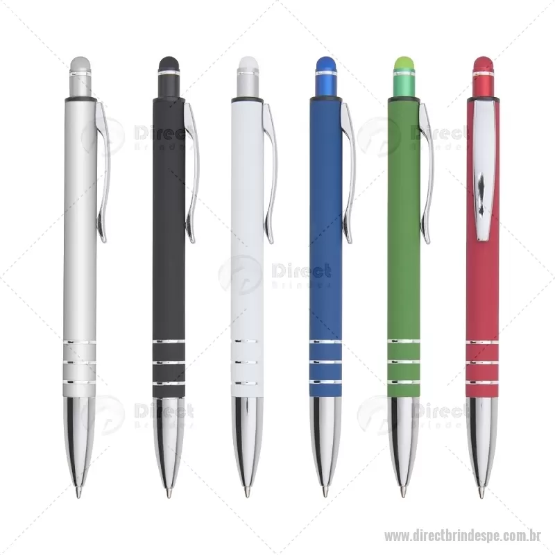 Caneta Metal Touch Caneta metálica touchscreen com acabamento emborrachado, acionamento por clique e carga esferográfica azul 1.0mm. Altura : 14,4 cm x Largura : 1,6 cm Peso aproximado (g): 18 - - DRTPECMT292