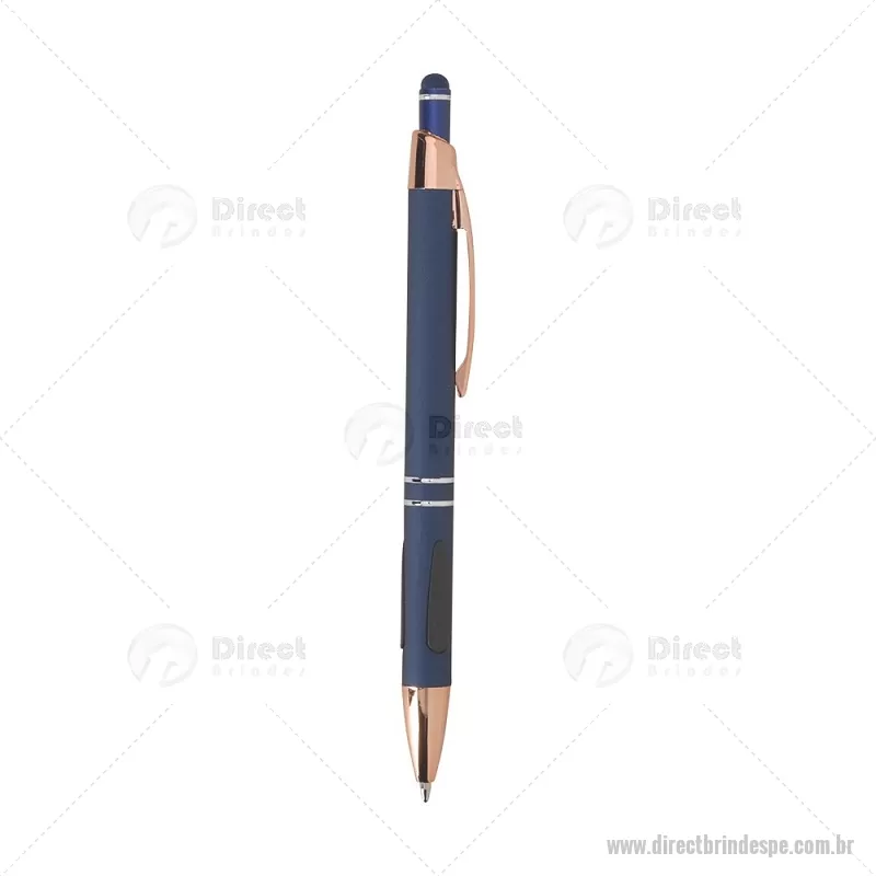Caneta em metal com detalhes emborrachados, carga esferográfica azul 1,0 mm e acionamento por clique. Possui ponta touch emborrachada para uso em telas sensíveis ao toque, unindo escrita e praticidade em um só item. - - DRTPECMT295