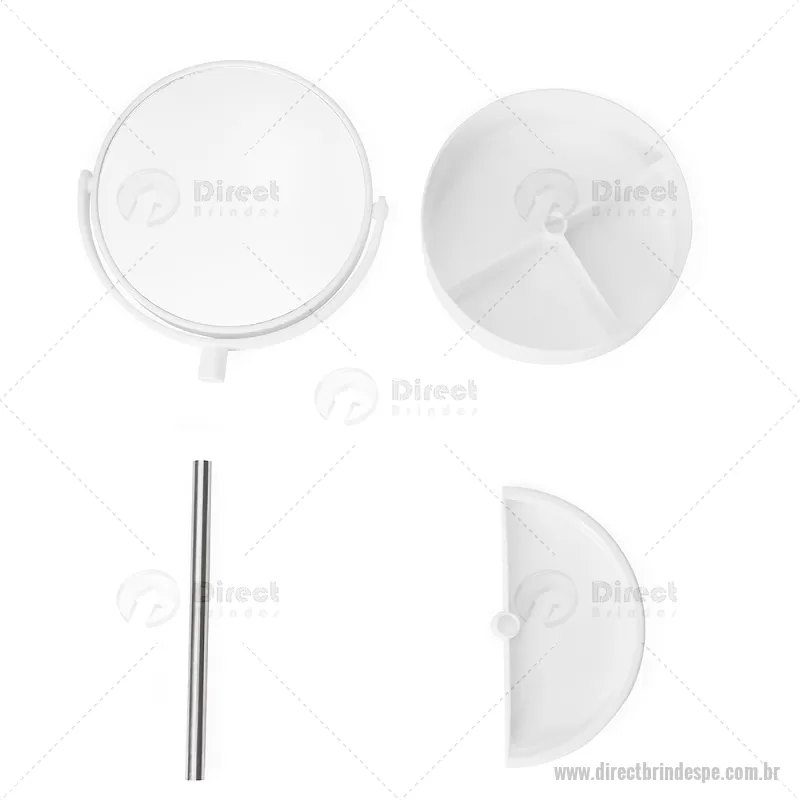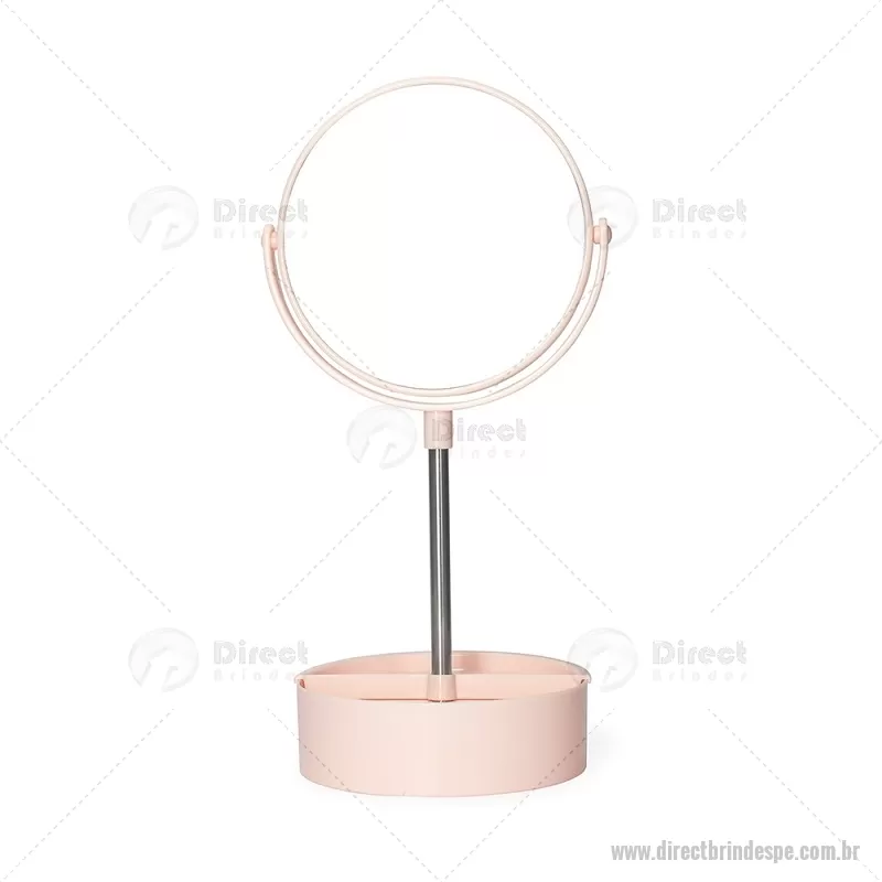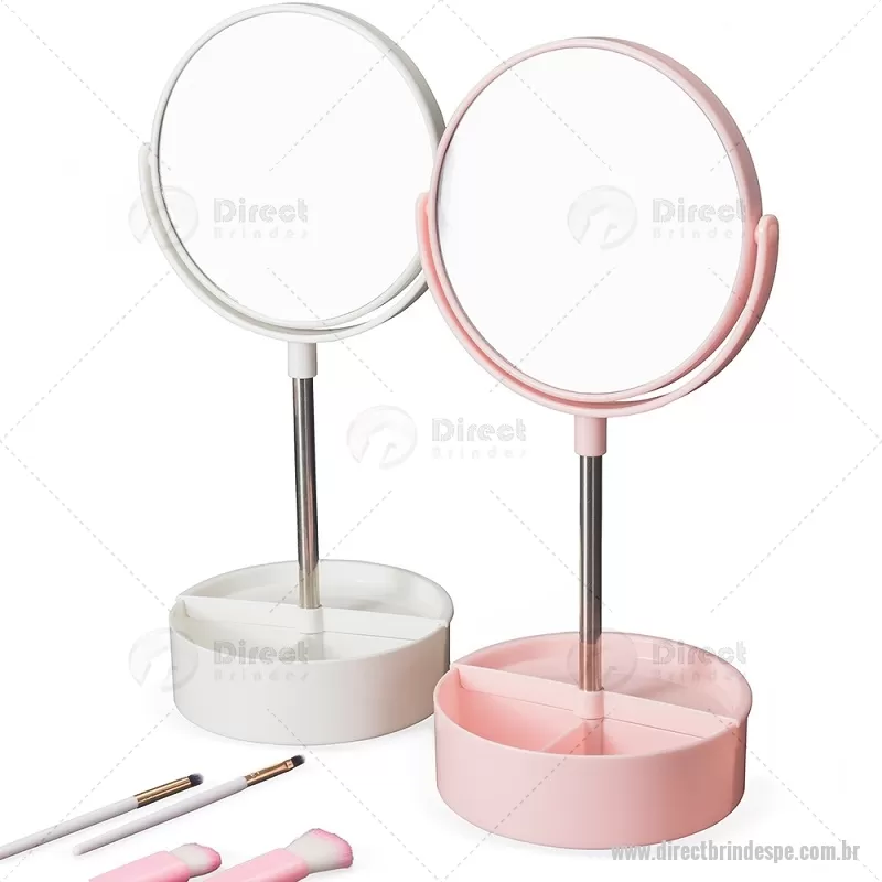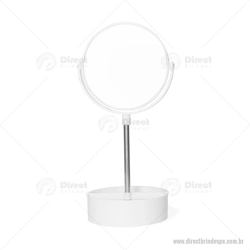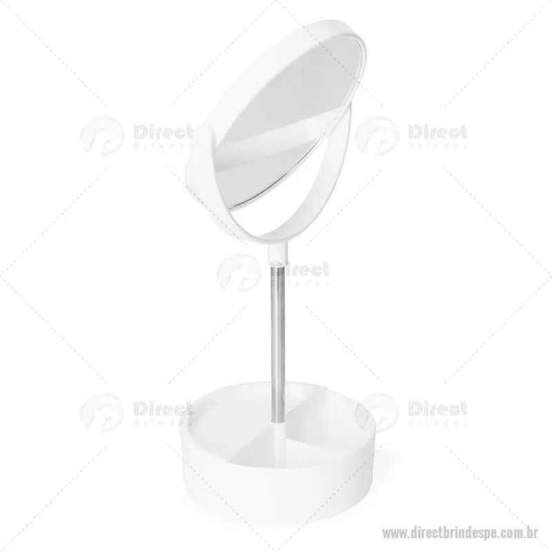 Espelho de Mesa Plástico Descrição: Espelho de mesa dupla face giratório com base e moldura feitas em plástico e pedestal de alumínio. Contém três divisórias na base para organizar de objetos diversos. Altura : 34,5 cm x Largura : 14,5 cm Peso aproximado (g): 275 - - DRTPEFEM121