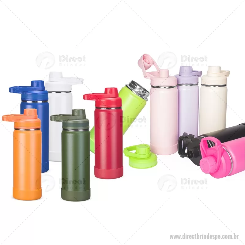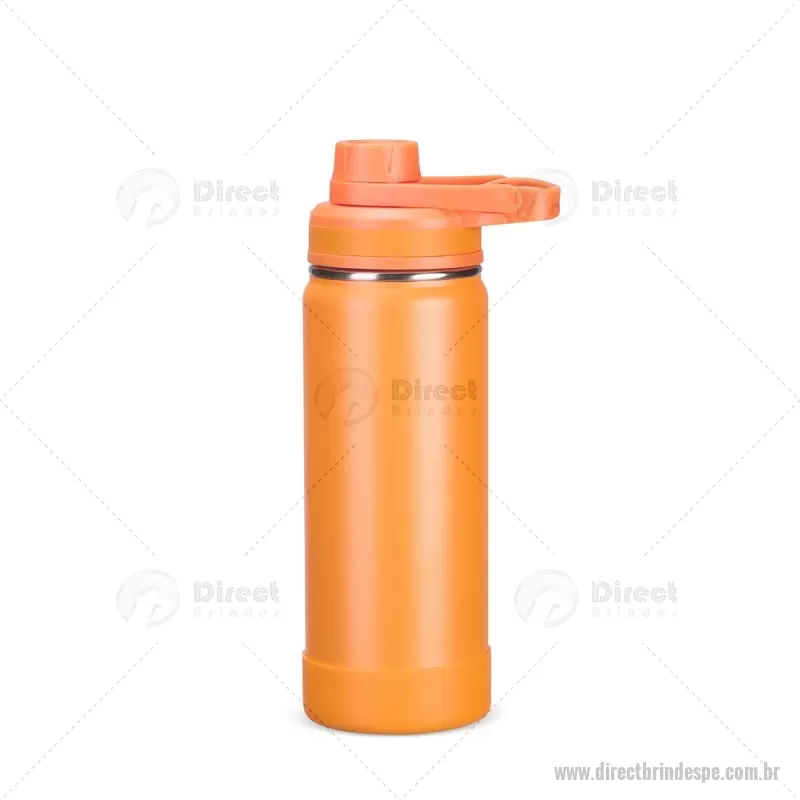 Garrafa Térmica 550ml inox com pintura eletrostática. Mantém a temperatura de líquidos por mais tempo graças à estrutura de parede dupla e ao isolamento a vácuo. Possui tampa plástica rosqueável com protetor de bocal e alça fixa. Acompanha protetor removível em silicone para a base. Altura : 22,5 cm x Largura : 7,4 cm x Circunferência : 23,3 cm Tamanho total aproximado (CxL): Diâmetro: 5,5 cm Peso aproximado (g): 290 - - DRTPEGAT172