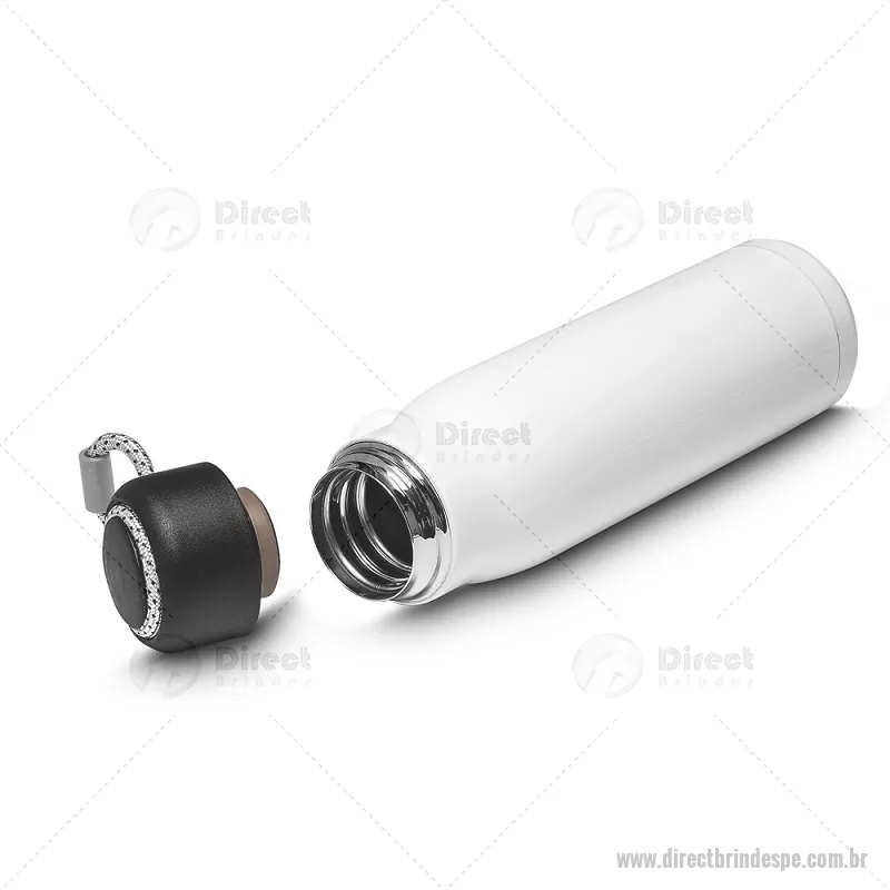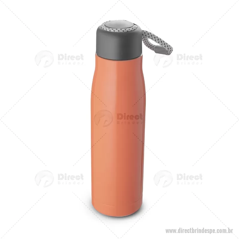 Garrafa térmica em aço inox 550ml brilhoso com parede dupla isolada a vácuo, com alça em corda para facilitar o transporte. Tampa plástica rosqueável e anel de silicone para vedação. Conserva líquidos : ??8 horas ??12 horas Dimensão do produto: 25xø7cm (AxøD) Peso do produto: 0,252kg - - DRTPEGAT101
