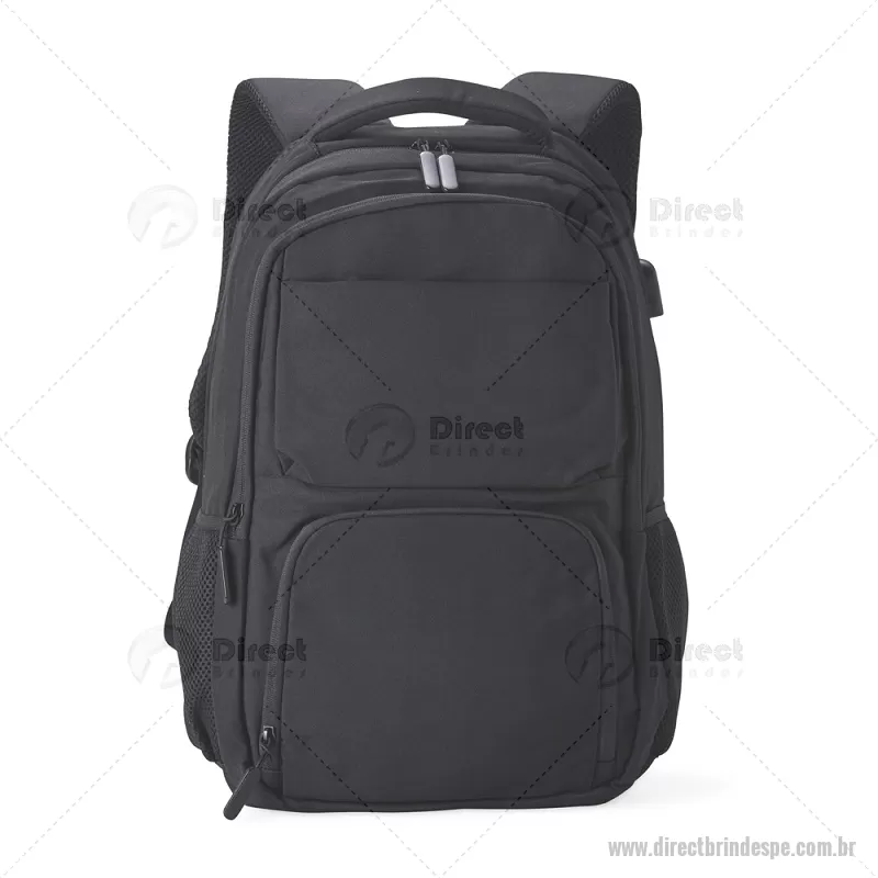 Mochila de Poliéster USB 28 litros com seis compartimentos, sendo o principal com bolso para notebook 15,6 e tablet 12,4. Com divisórias internas para acessórios e porta chave, a mochila possui adaptador USB externo, bolsos laterais telados, duas alças de mãos, área costada e alças para as costas com revestimento espumado. Altura : 43 cm x Largura : 31 cm x Profundidade : 15,5 cm Peso aproximado (g): 786 - - DRTPEMC248