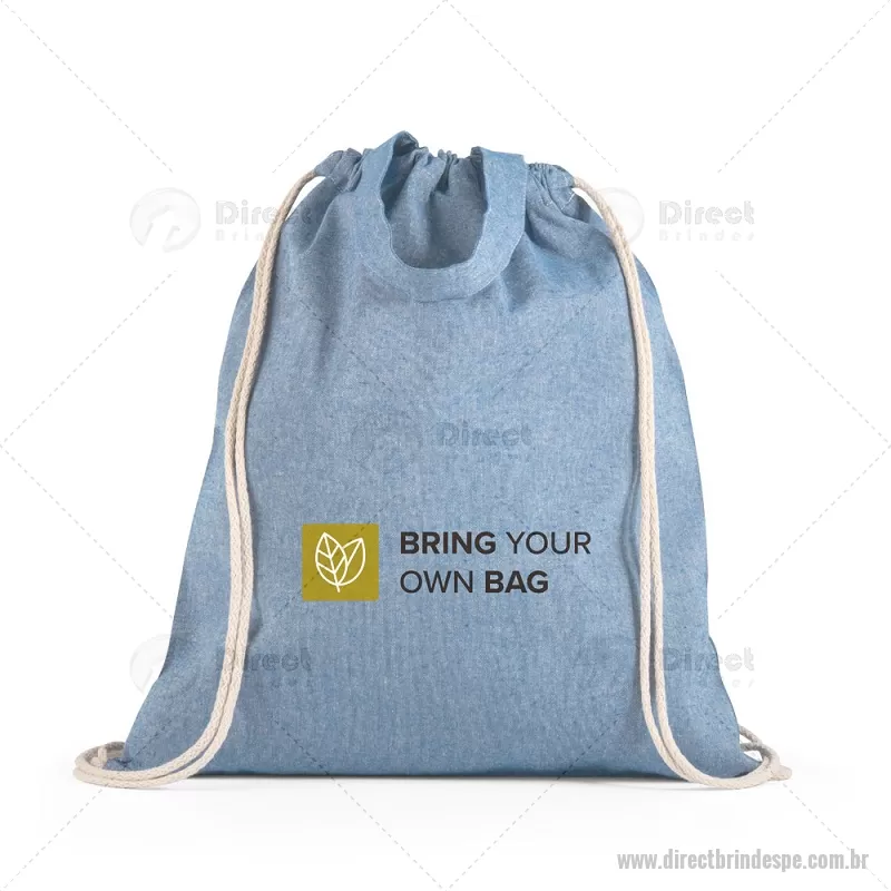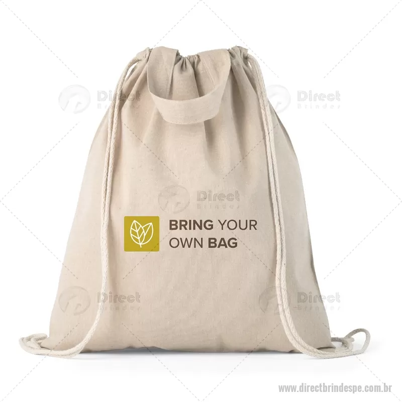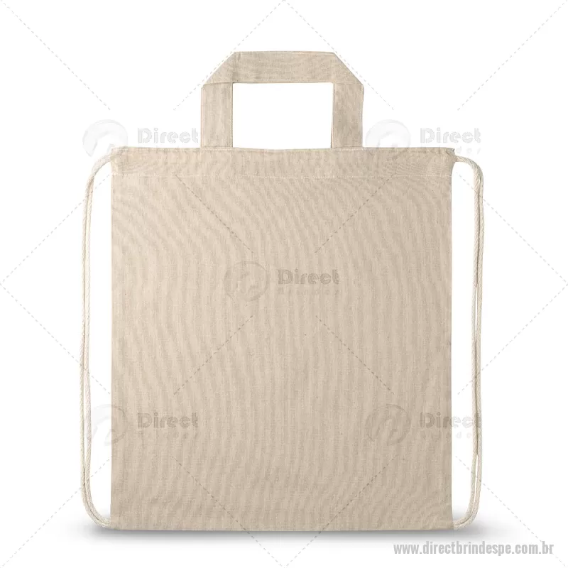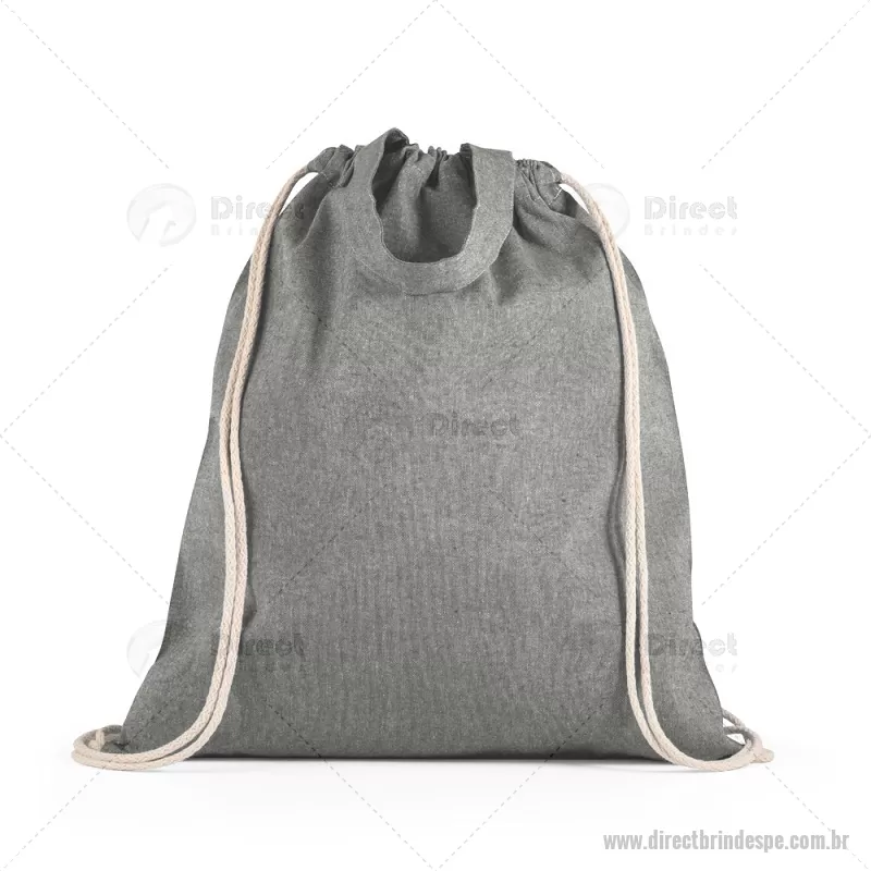 Sacola tipo mochila saco em 70% algodão reciclado e 30% poliéster reciclado (140g/m²), com alças 30 cm. O tecido é sem tingimento, e utilizado na sua cor original, sem produtos químicos de tingimento ou branqueamento, contribuindo para um menor impacto ambiental. Medidas: 370 x 410 mm Peso do Produto (g.): 80 gramas - - DRTPEMCS025