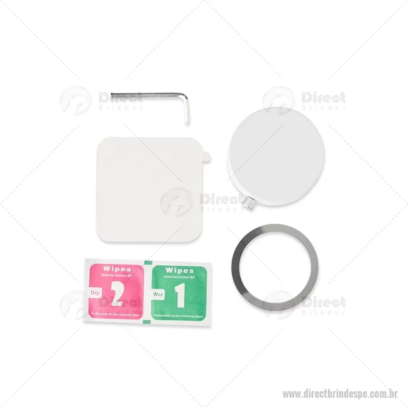 Suporte magnético para smartphones feito em plástico, com ajuste de inclinação e ventosa retrátil acionada por chave seletora para fixação em superfícies lisas. Permite uso do aparelho na vertical ou horizontal por meio do encaixe magnético, compatível com celulares com função magnética ou com anel adaptador. Acompanha dois anéis magnéticos adesivos, um adesivo em policarbonato, kit de limpeza e chave Allen. - - DRTPETEC536