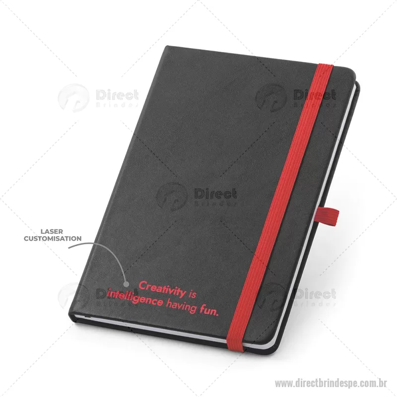 Bloco / Caderno A5 com capa dura em PU com 160 páginas pautadas. Caderno A5 de capa dura em PU com substrato colorido permitindo a gravação a laser da cor do elástico. Contém 160 páginas pautadas, elástico, fita separadora, suporte para esferográfica (não inclusa) e bolso em papel na parte traseira da capa. Medidas do produto: 14,0 x 21,0 cm - - DRTPEBLC181