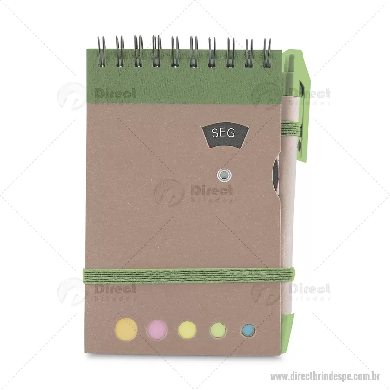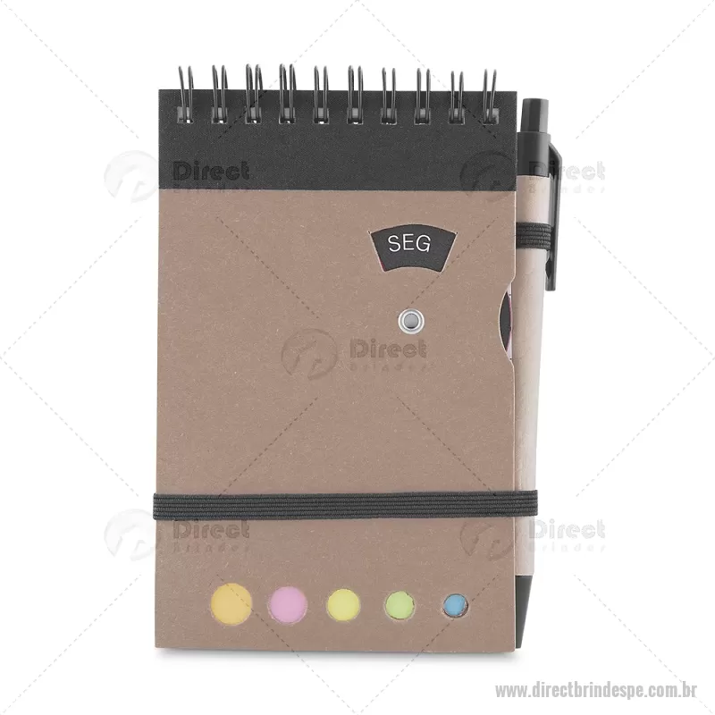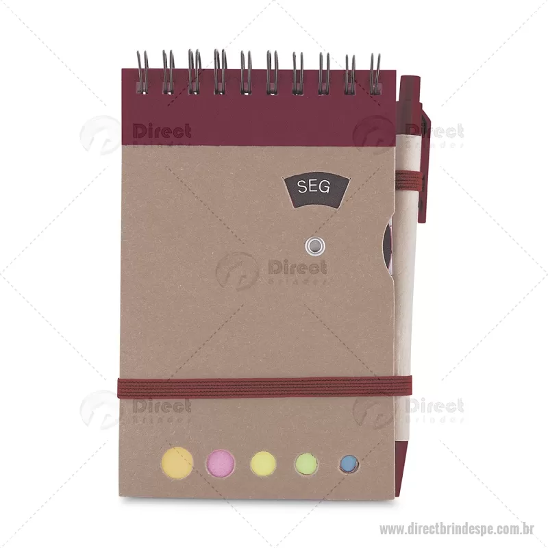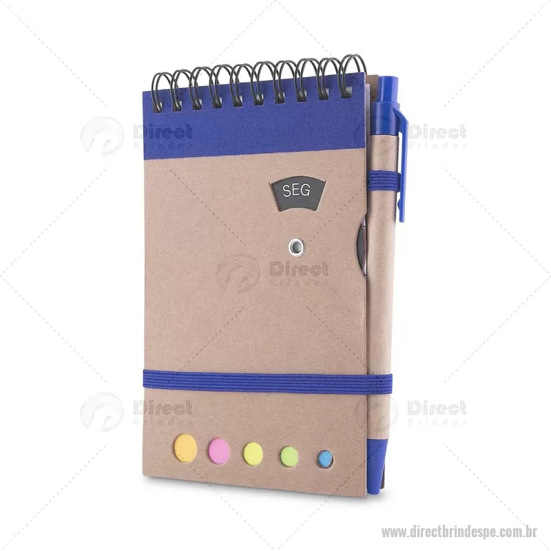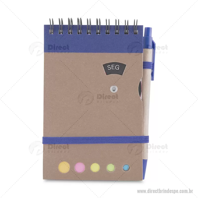Mini caderno A6 com caneta com capa em papel kraft, com 70 folhas pautadas e blocos adesivos (sticky notes) coloridos. Acompanha disco rotativo na capa com os dias da semana e caneta produzida em papelão reciclado com detalhes em plástico e escrita em azul. Peso do Produto: 0,088kg (Caderno) Peso do Produto: 0,004kg (Caneta) Dimensão Produto: 14,5x9cm (Caderno) Dimensão do Produto: 3,6xø0,9cm (Caneta) - - DRTPEBLC275