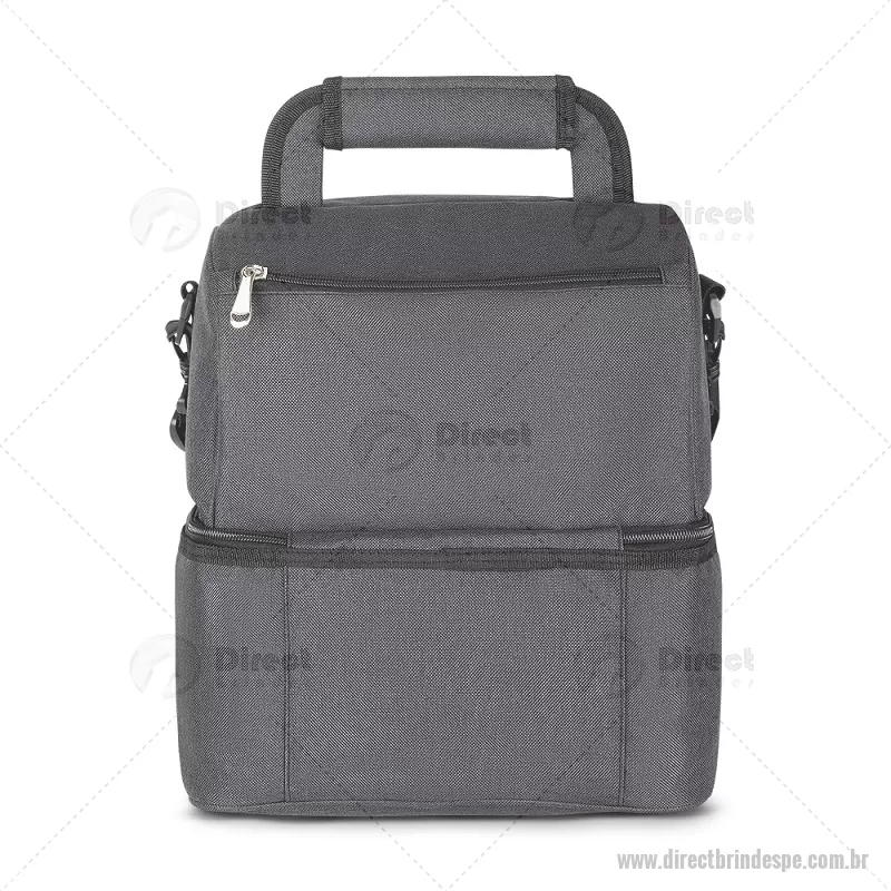 Bolsa térmica em tecido poliéster, bolso frontal, alça de mão, alça de ombro regulável com 2 compartimentos térmicos. - - DRTPEBT070