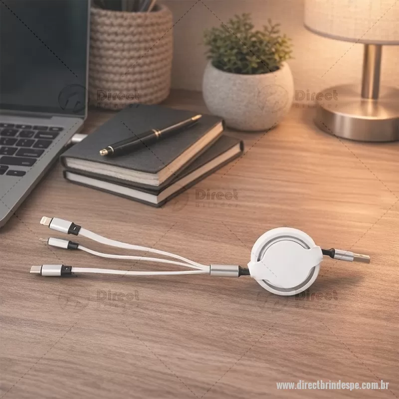 Cabo USB retrátil 3 em 1 com extensão máxima de 1m. Possui conectores USB-C, Micro USB e Lightning em uma extremidade e conector USB-A na outra. Observação: cabo destinado apenas à recarga; não realiza transferência de dados. Altura : 24 cm x Largura : 5 cm Comprimento : cabo 100cm Peso aproximado (g): 37 - - DRTPETEC549