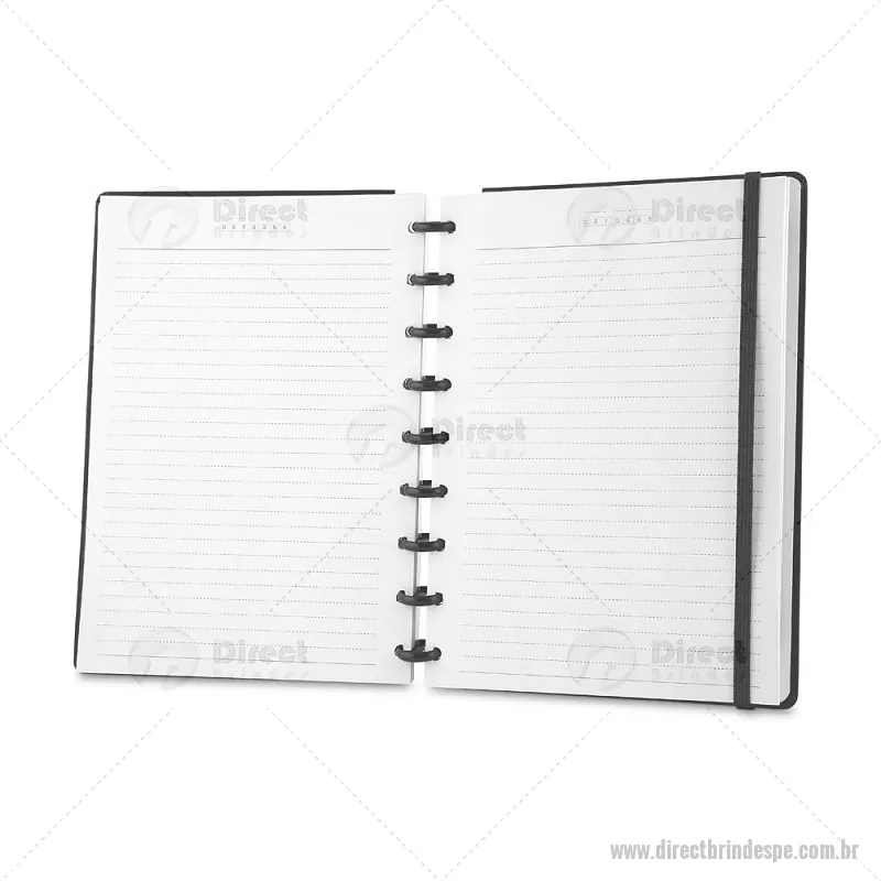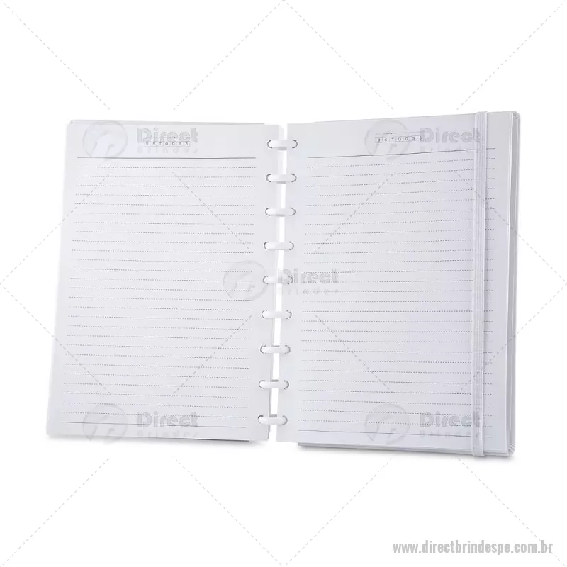 Caderno de anotações com folhas removíveis, capa dura cartonada revestida em material sintético, 80 folhas pautadas 75 g/m², calendário anual, manual de instruções, bolso plástico interno para documentos e elástico para fechamento seguro. Peso do Produto: 0,354kg Dimensão do Produto: 23,5x18cm - - DRTPECAD035