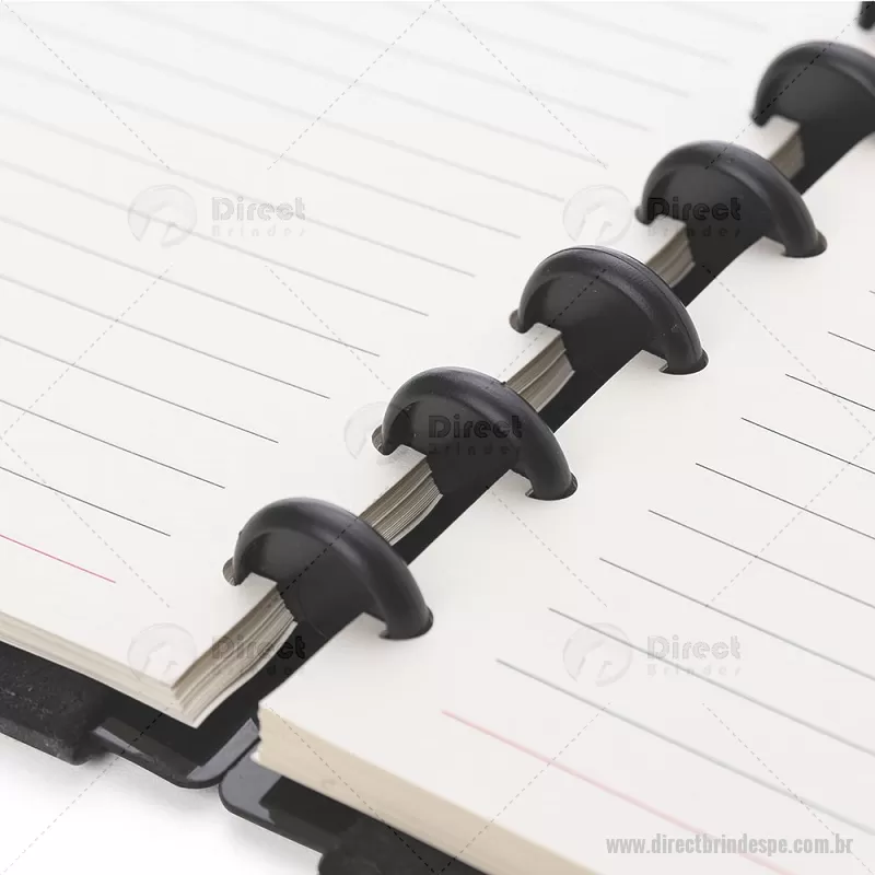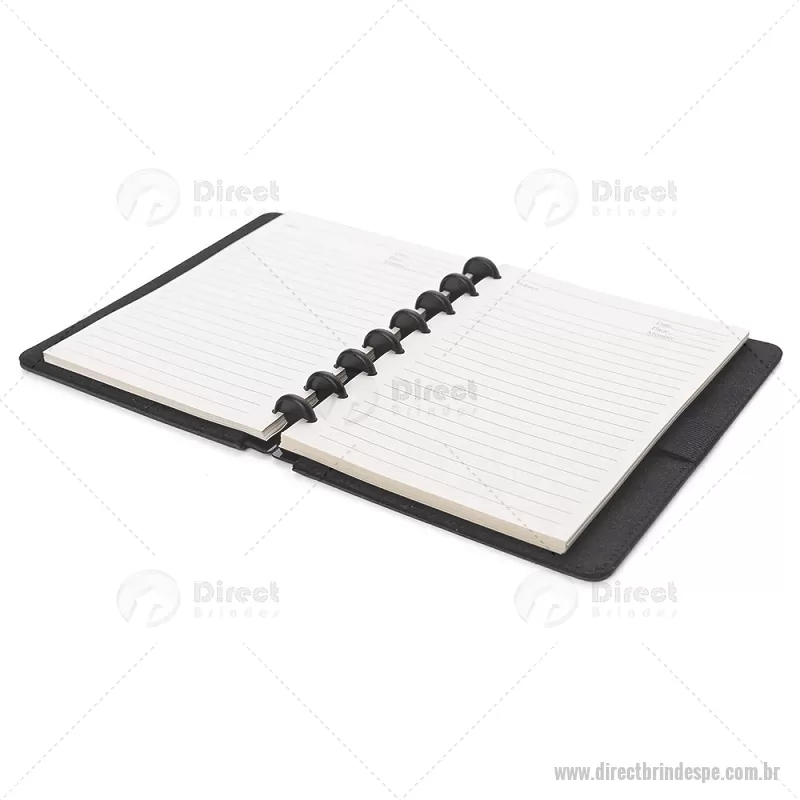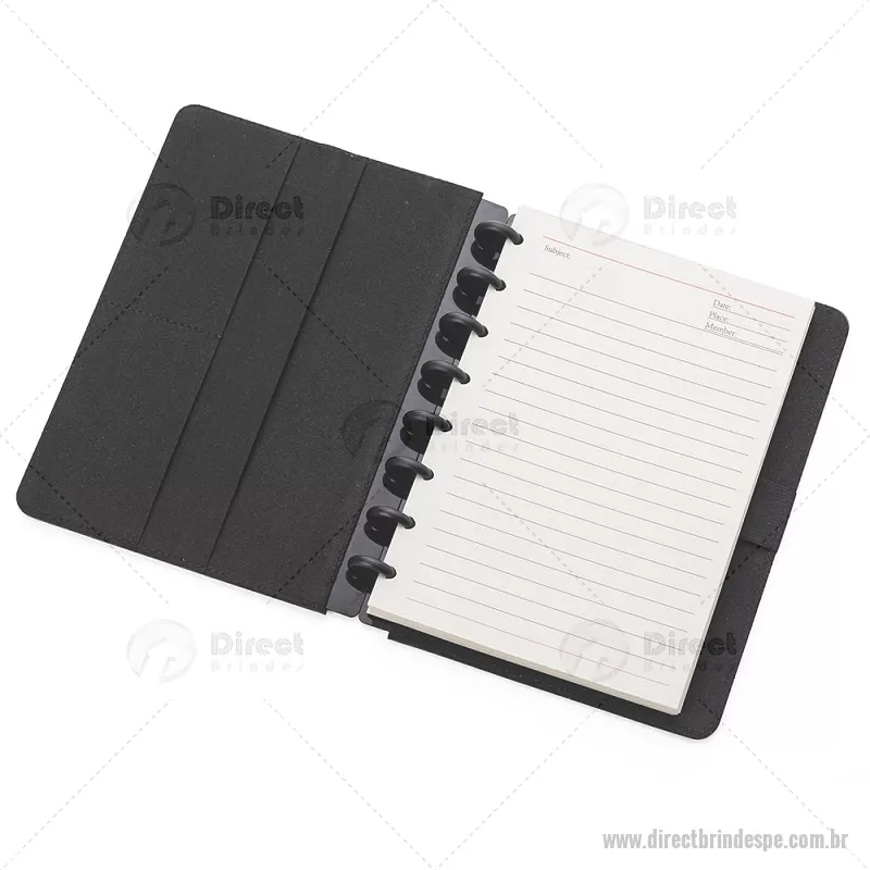 Caderno de anotações com capa dura em material sintético, contendo: Miolo de 80 folhas pautadas na cor bege; Porta Canetas; Porta Cartões; Obs.: As folhas do miolo são destacáveis. Dimensão do produto: 22,3x18,0x2,1cm (AxLxP) Peso do Produto: 0,438kg - - DRTPECAD025