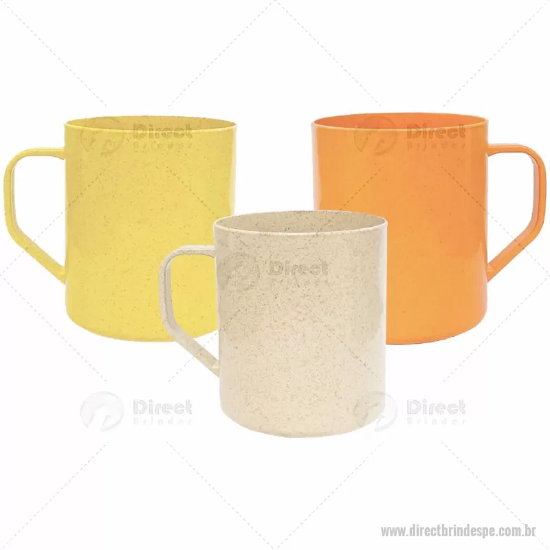 Caneca Ecológica fabricada com fibra de arroz. Capacidade 400 ml. Possui um formato clássico de caneca para chá. Confeccionada em material sustentável. Brinde ideal para feiras e eventos promocionais. - - DRTPECAN054