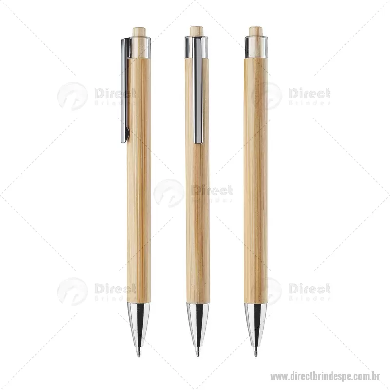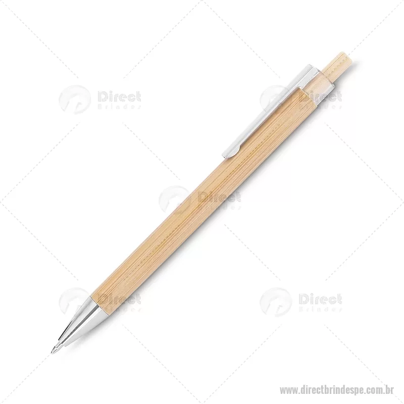 Caneta com corpo em bambu, acionador em bambu com detalhe plástico, ponteira e clipe cromado. Dimensão Produto: 14xø1cm Peso do Produto: 0,007kg - - DRTPECPECO072