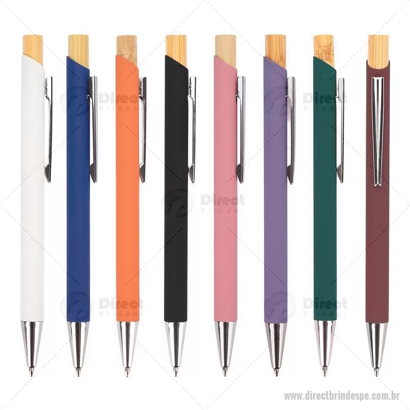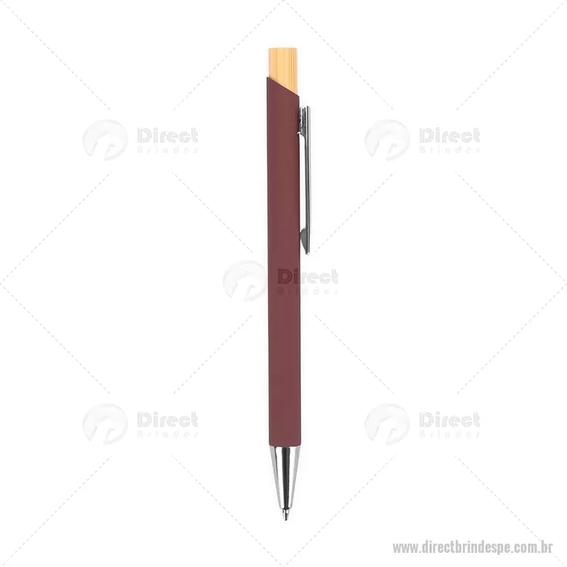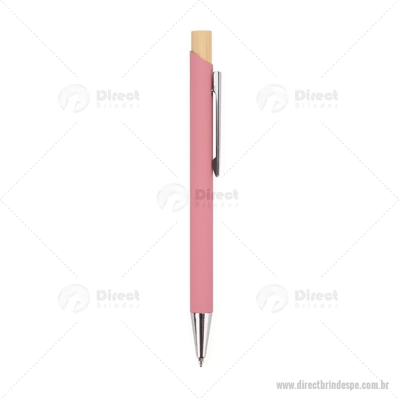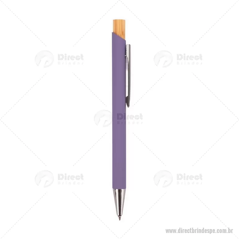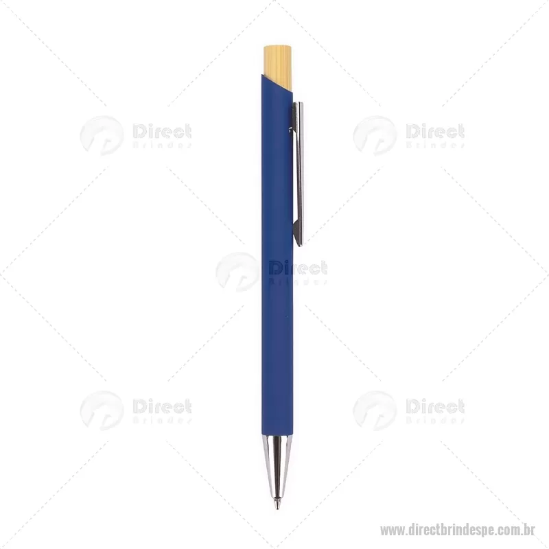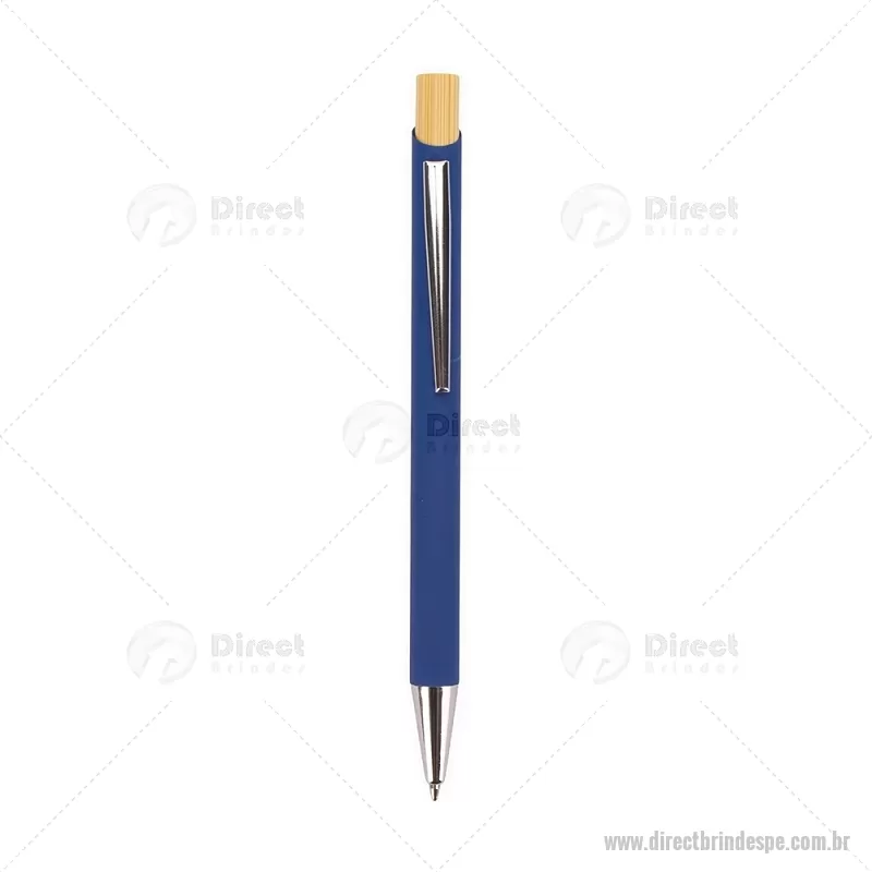 Caneta esferográfica azul 1,0 mm com corpo metálico e acionamento por clique em bambu. Oferece escrita leve, confortável e precisa para o uso diário. - - DRTPECMT297