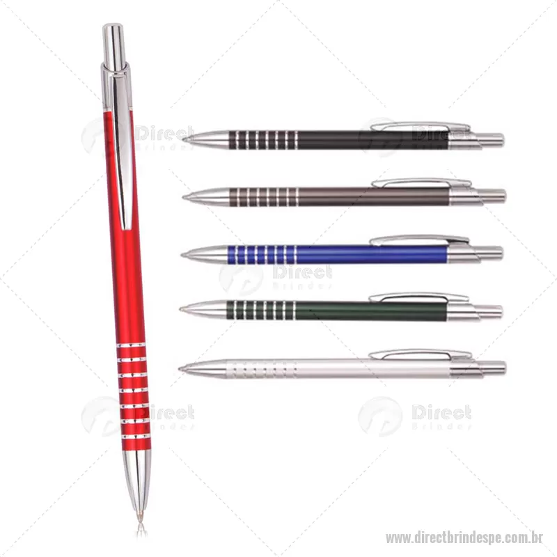 Caneta em metal com click injetada, clip, ponteira e alça brilhante com detalhes pratas. Consultar cores disponíveis. - - DRTPECMT009