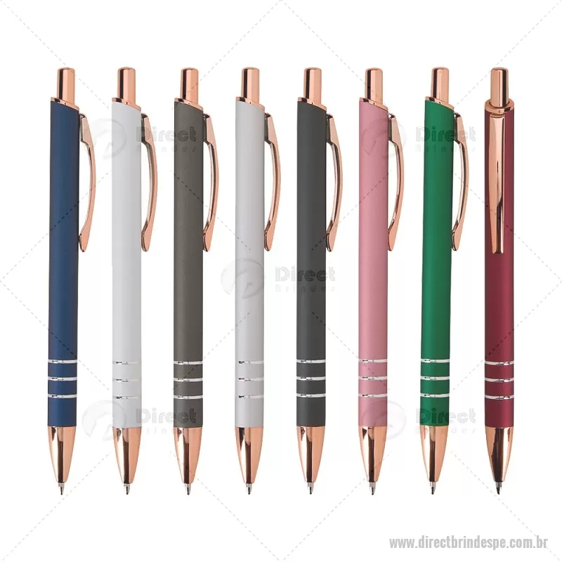 Caneta em metal com acionamento por clique e carga esferográfica azul de 1,0 mm. Leve e confortável, garante escrita precisa e uso prático no dia a dia. - - DRTPECMT303