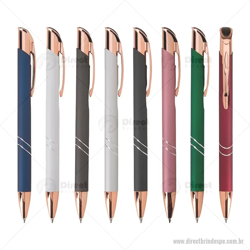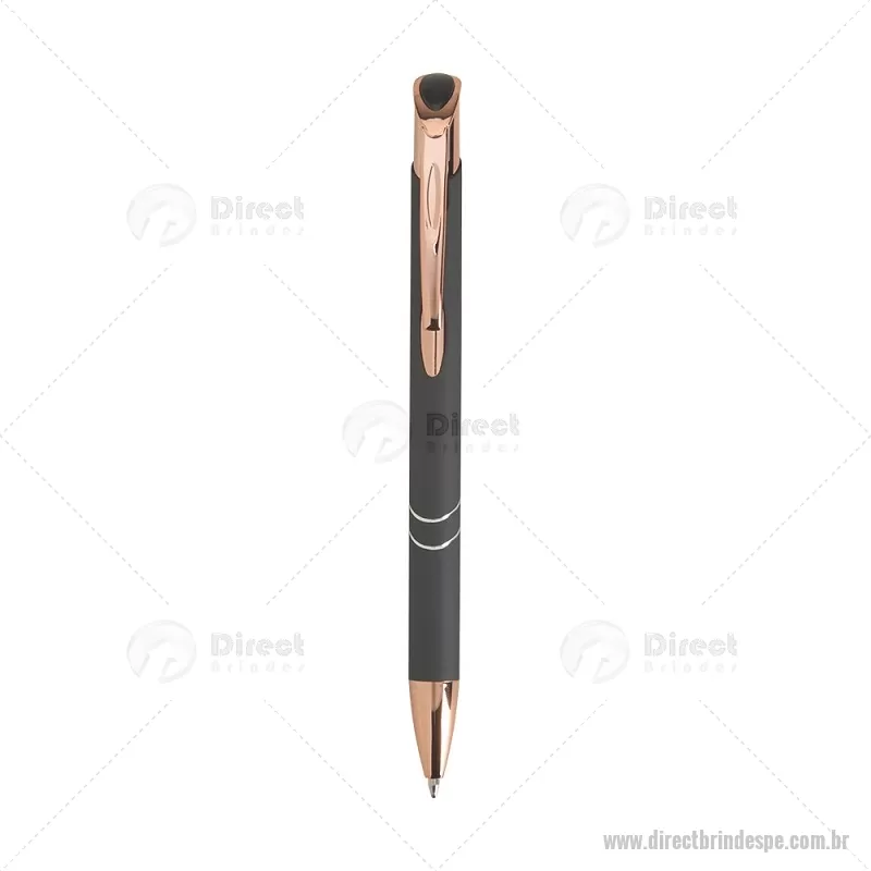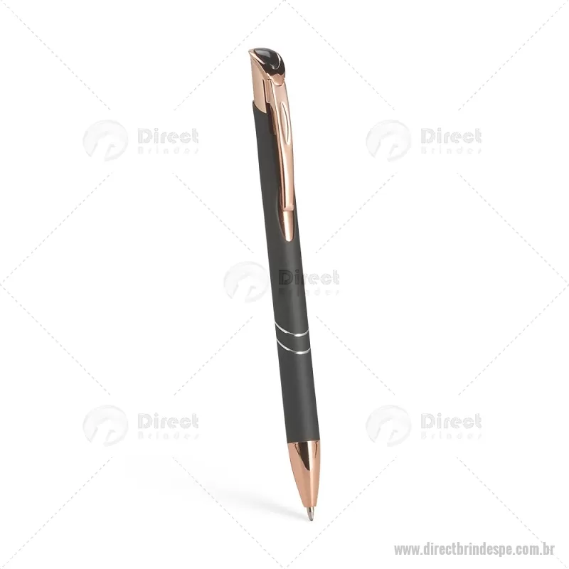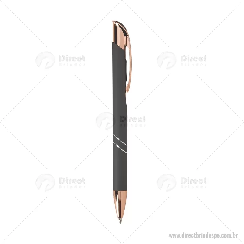 Caneta esferográfica com corpo metálico e detalhes em plástico, acionamento por clique e carga azul de 1,0 mm. Leve e confortável, garante escrita suave e precisa para o uso diário. - - DRTPECMT304