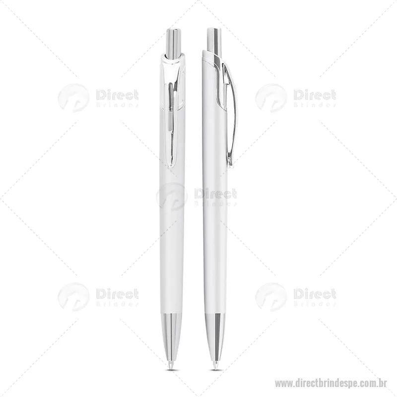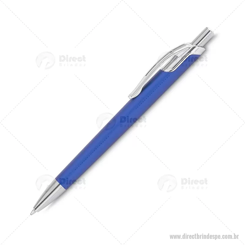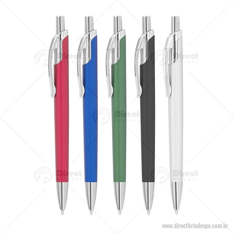 Caneta com corpo em alumínio reciclado, acionador e clipe cromado, escrita esferográfica em azul. Peso do Produto: 0,016kg Dimensão do Produto: 14ø1cm - - DRTPECMT305