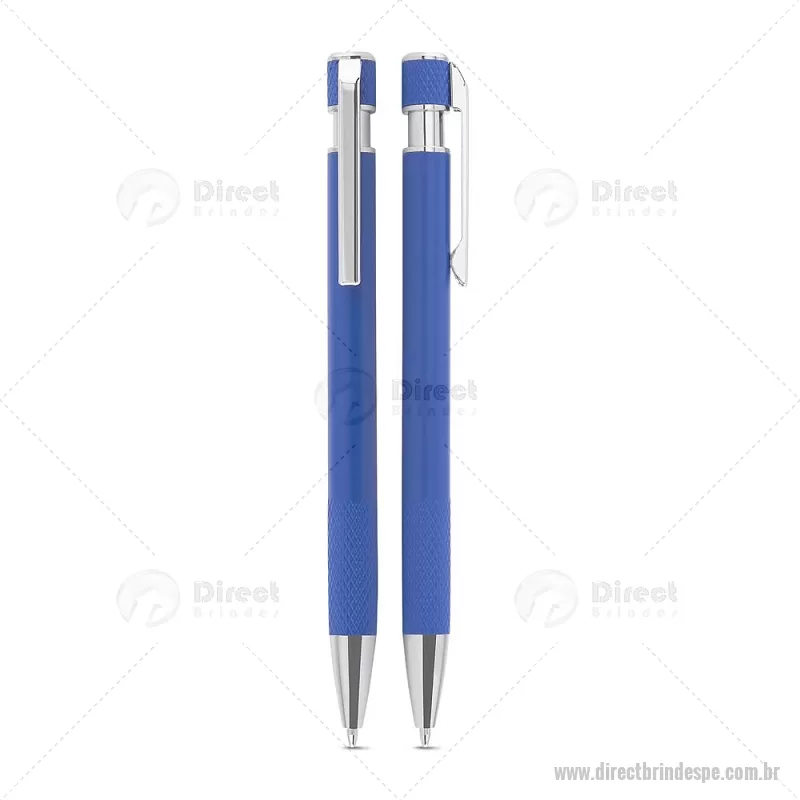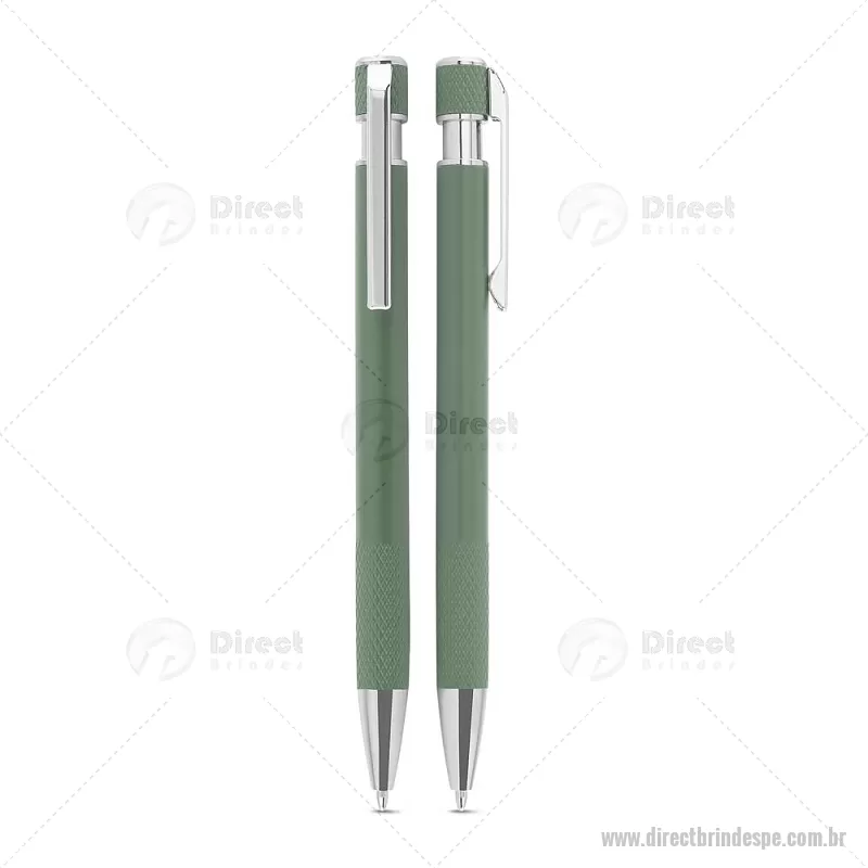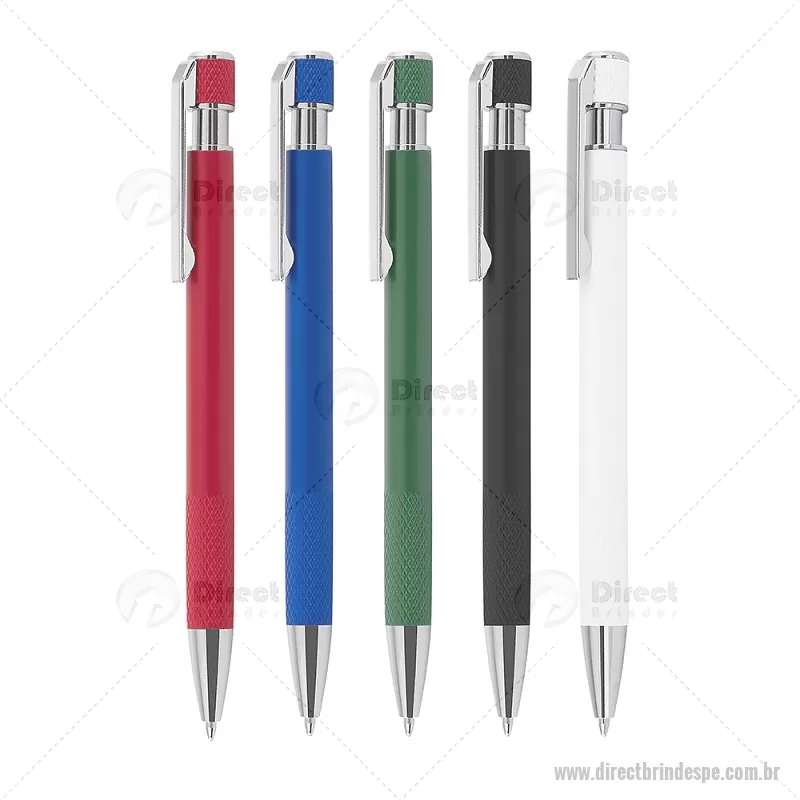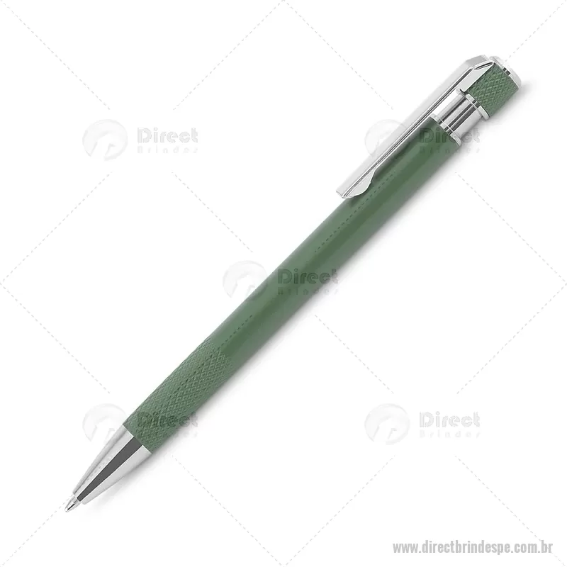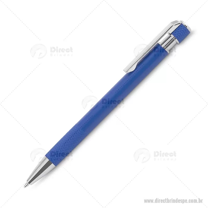 Caneta esferográfica com corpo em alumínio reciclado, acionador e clipe cromado, escrita em tinta azul. Refil substituível tipo Parker. Peso do Produto: 0,016kg Dimensão do Produto: 13,6xø0,9cm - - DRTPECMT306