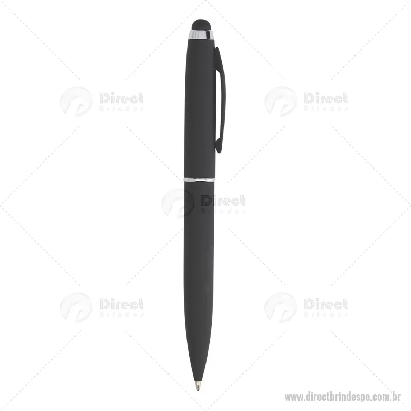 Caneta metálica touchscreen com acabamento emborrachado, acionamento por rotação e carga esferográfica azul 1mm. Largura : 1,7 cm x Comprimento : 14,4 cm Peso aproximado (g): 27 - - DRTPECMT272