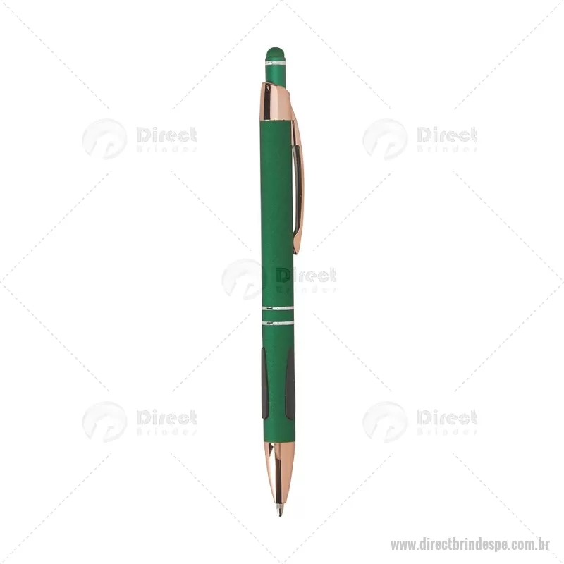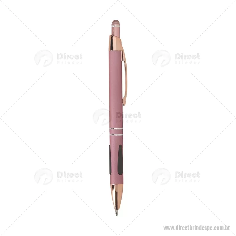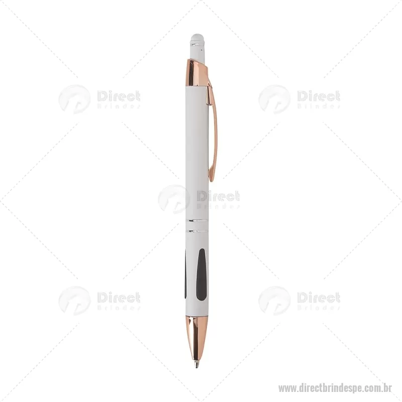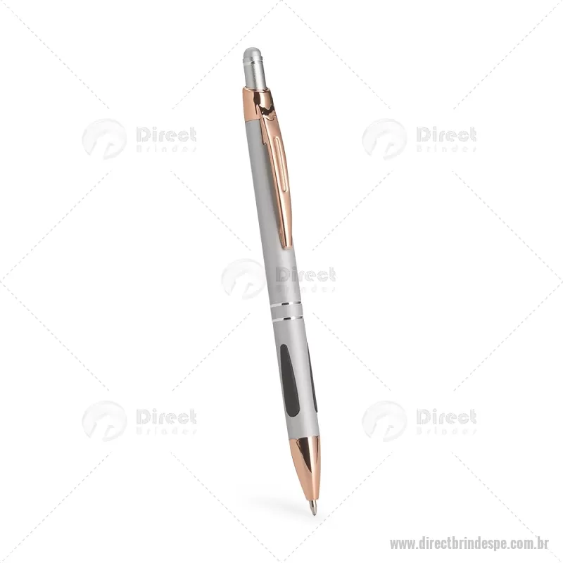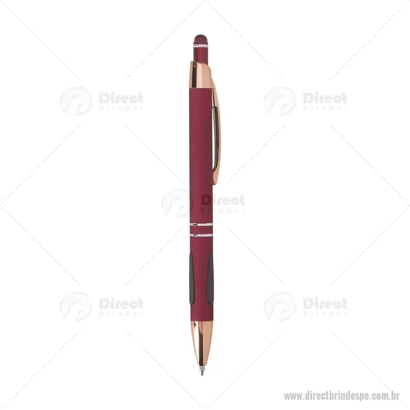 Caneta em metal com detalhes emborrachados, carga esferográfica azul 1,0 mm e acionamento por clique. Possui ponta touch emborrachada para uso em telas sensíveis ao toque, unindo escrita e praticidade em um só item. - - DRTPECMT295