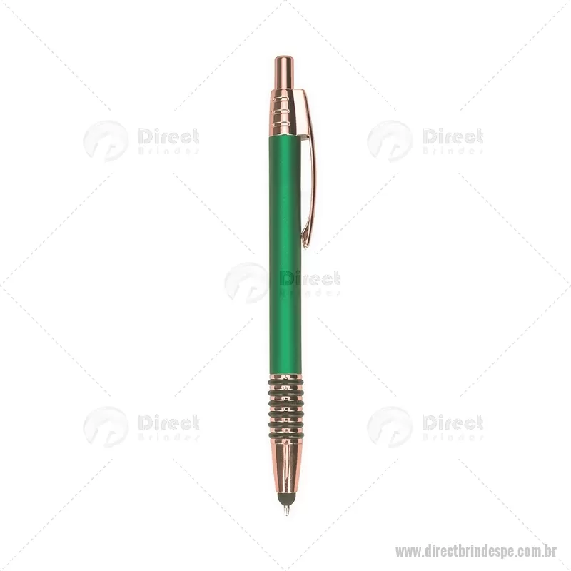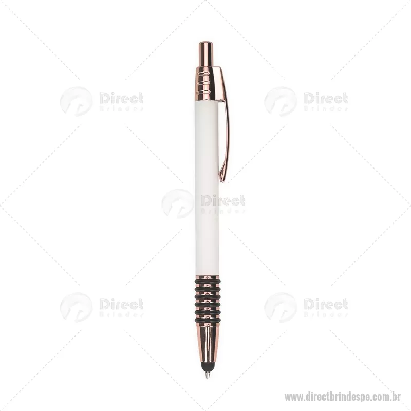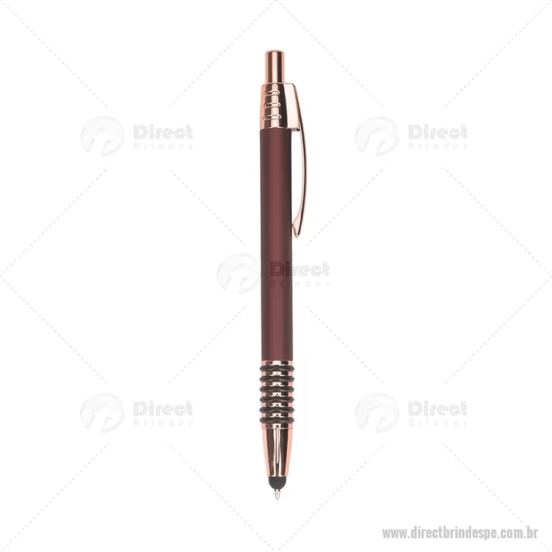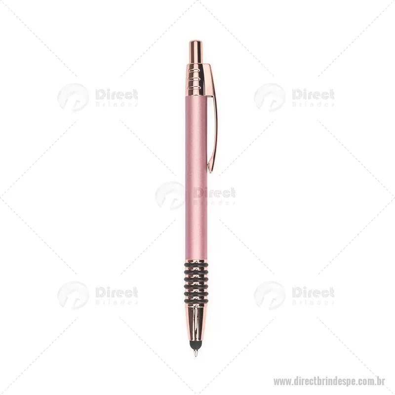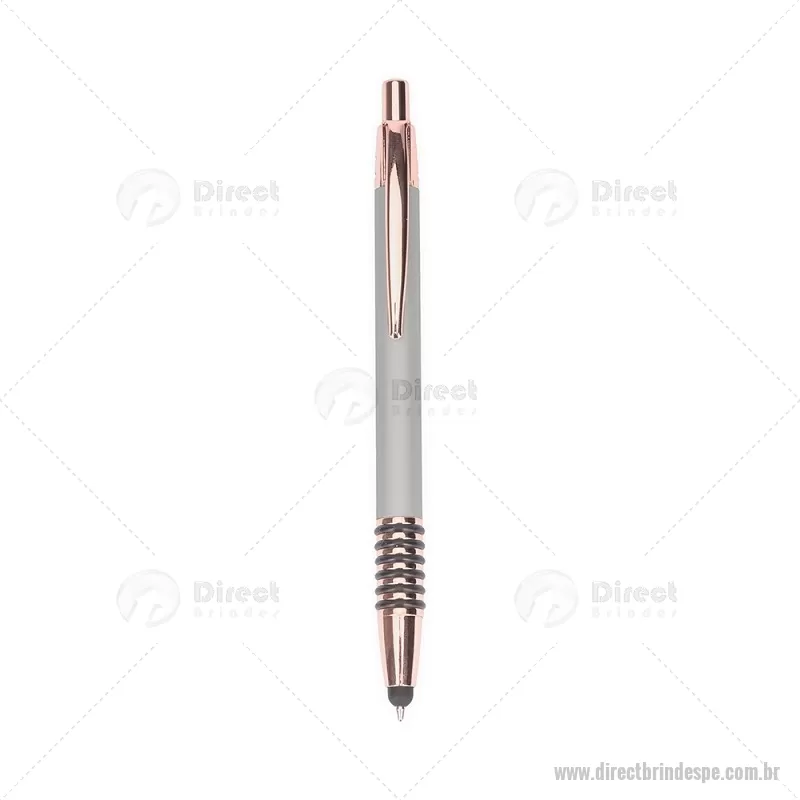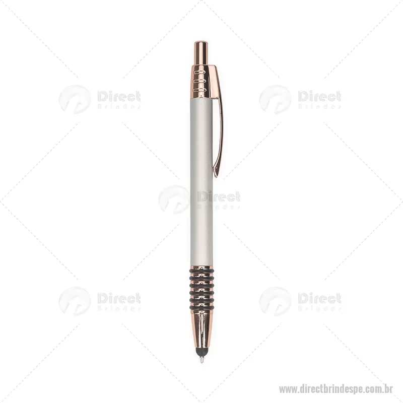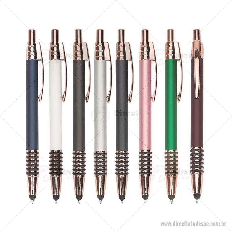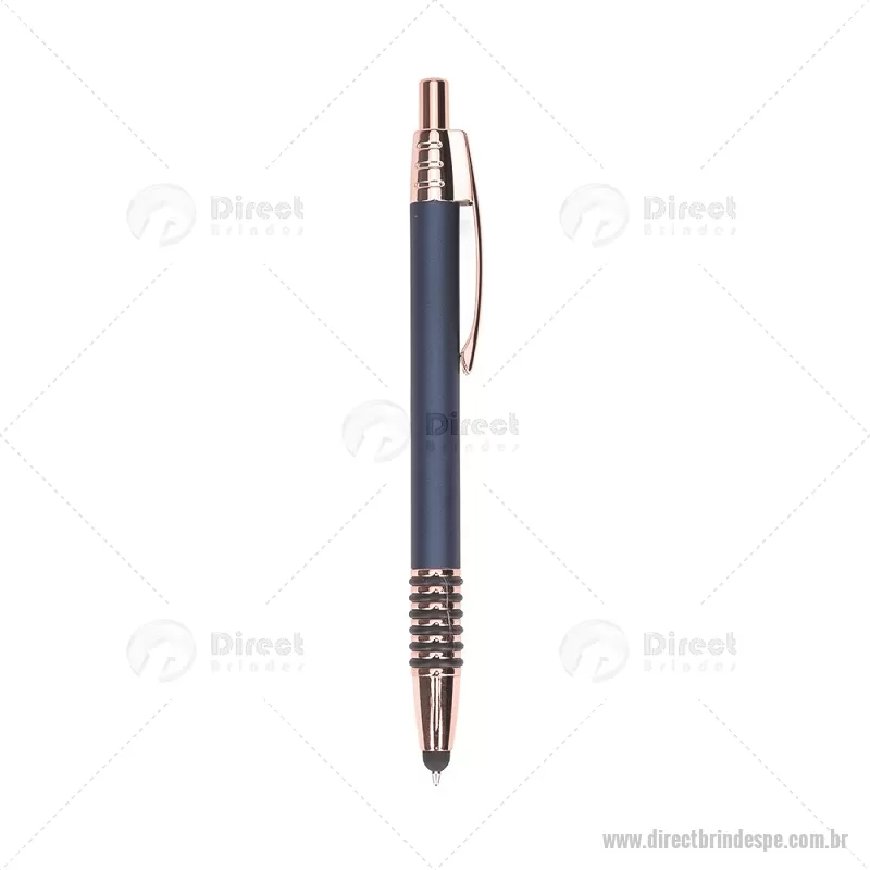 Caneta metálica com detalhes emborrachados no corpo, garantindo maior conforto na escrita. Possui carga esferográfica azul 1,0 mm, acionamento por clique e ponteira touch para uso em telas sensíveis ao toque. Prática e versátil para o dia a dia. - - DRTPECMT298