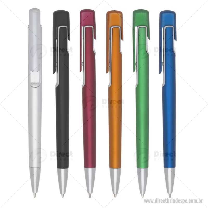 Caneta de plástico com click. Corpo colorido e clip coloridos. Consultar cores disponíveis. - - DRTPECPL043