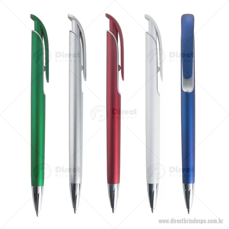 Caneta plástica na cor colorida fosca com detalhe prata ao redor do clip e na ponteira. Aciona por clique. - - DRTPECPL162
