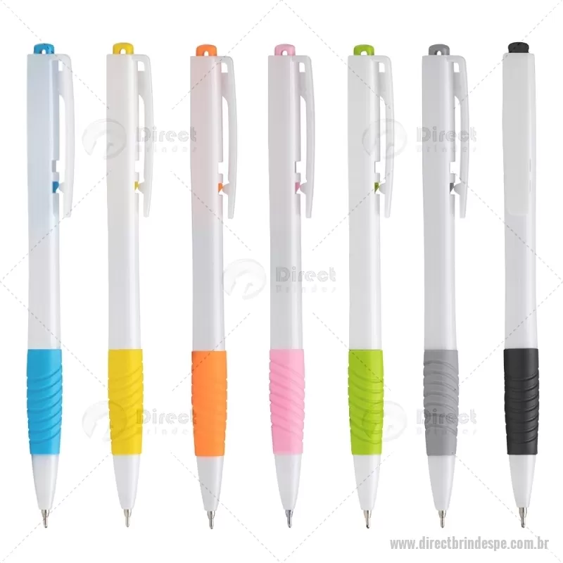 Caneta plástica com detalhe emborrachado e acionamento por clique, carga esferográfica azul 0.8mm. Medidas caneta: Largura : 1,2 cm x Comprimento : 13,6 cm Peso aproximado (g): 7 - - DRTPECPL191