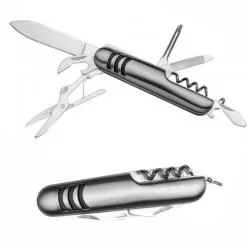 * Funções: Alicate, lixa, abridor de latas, mini serra de madeira, descamador, formão, faca, cortador de fios e chave de fenda.