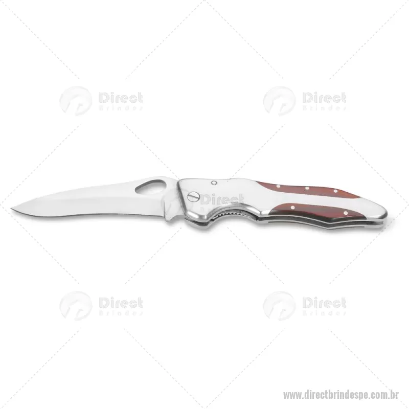 Canivete em aço inox e madeira com fecho de segurança e clipe. 115 x 16 x 36 mm - - DRTPECVT018