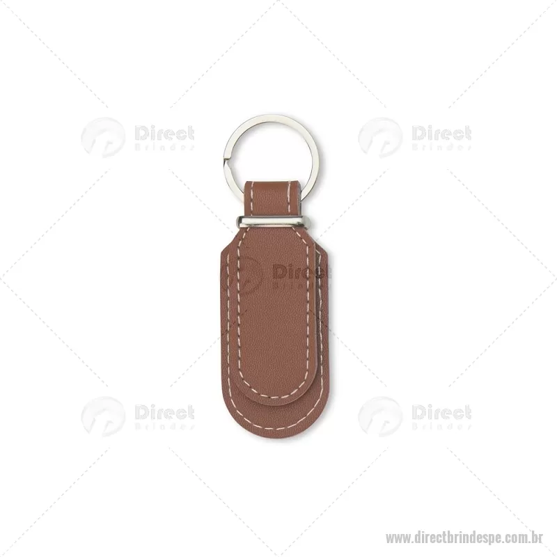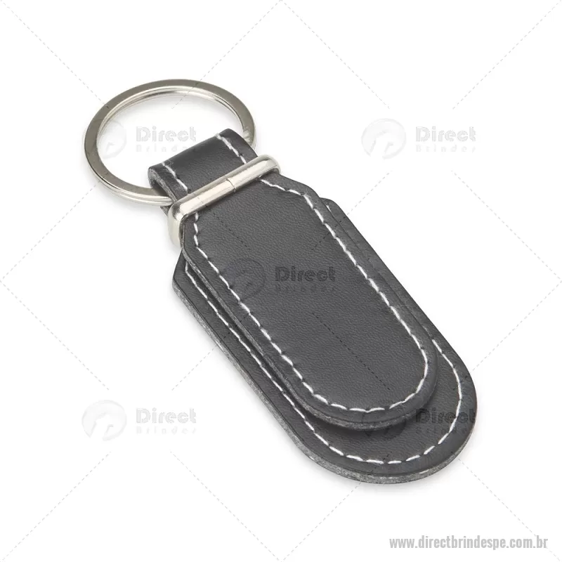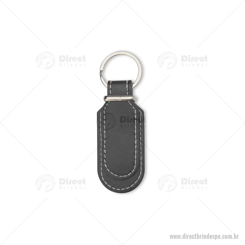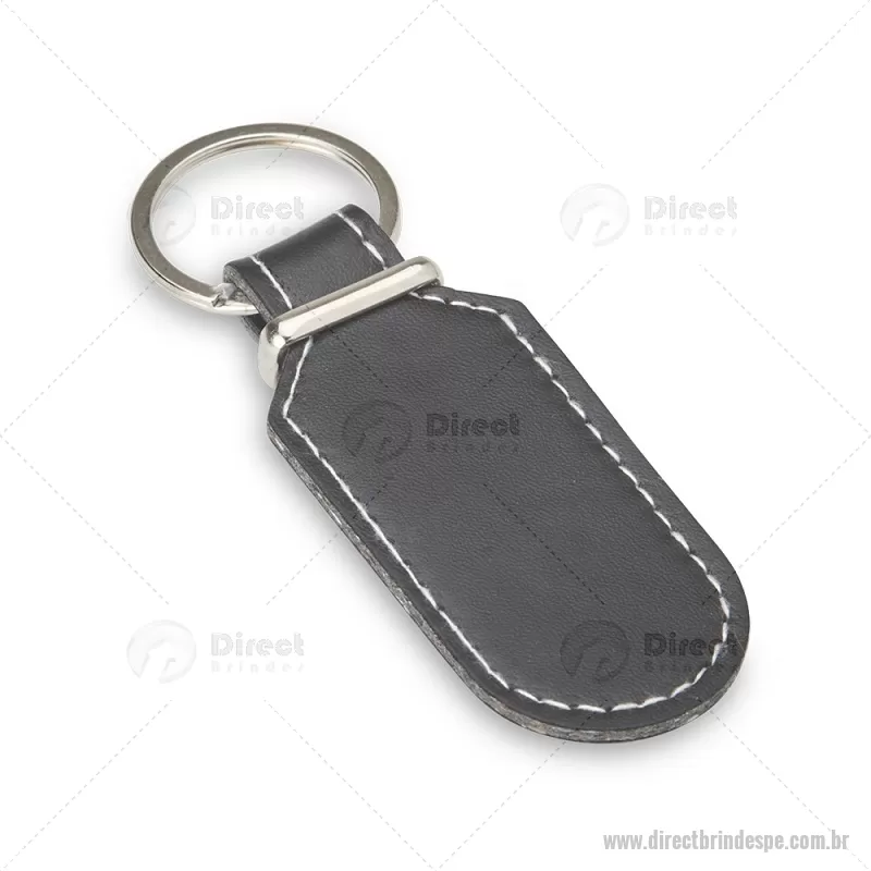 Chaveiro de Couro Sintético com detalhe em metal e frente e verso lisos. Altura : 10,5 cm x Largura : 3,4 cm x Espessura : 1,6 cm Peso aproximado (g): 13 - - DRTPECHV204
