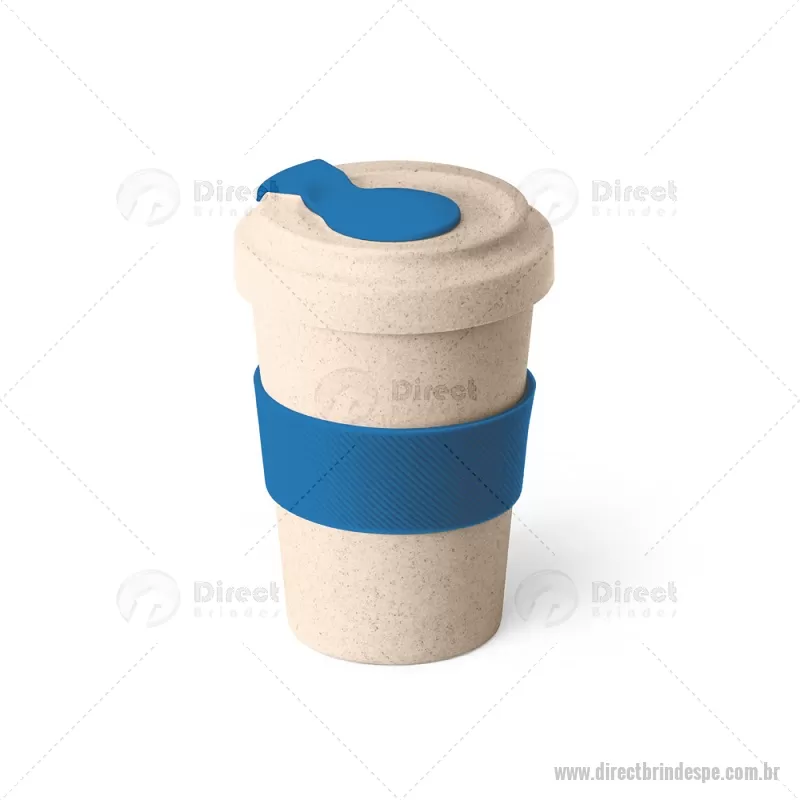 Copo de viagem 500 ml em fibra de bambu (50%) e PP (50%), com tira de silicone no corpo para facilitar o transporte. A tampa em silicone no topo roda para tapar abertura e prevenir salpicos. Food grade. Medidas do produto: ø9,5 x 14,0 cm - - DRTPECPO081