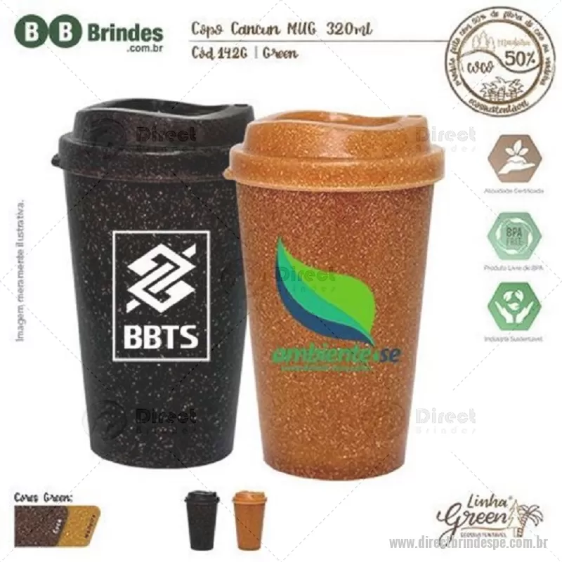Capacidade para 320ml. Copo sustentável feito com 50% de fibra de coco ou madeira e 50% de Plástico Premium (PP), design moderno e acabamento impecável, feito em material atóxico e resistente ao micro-ondas e máquina de lavar louças. Acompanha tampa MUG. - - DRTPEZ142G