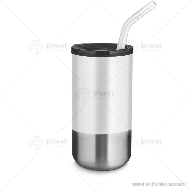 Copo em inox com canudo removível, com capacidade de até 550ml. Pintura fosca na parte externa e a parte interna revestida com plástico PP. - - DRTPECPO127
