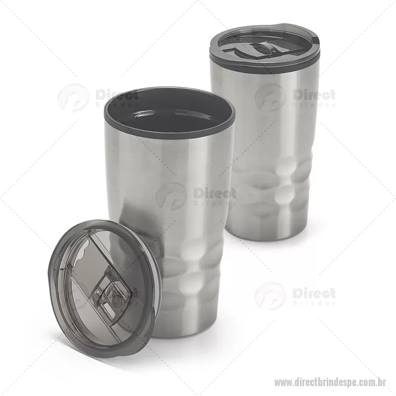 Copo de viagem. Aço inox e PP. Com corpo duplo. Capacidade: 510 ml. Food grade. Fornecida em caixa. ø87 mm x 151 mm - - DRTPECPO072