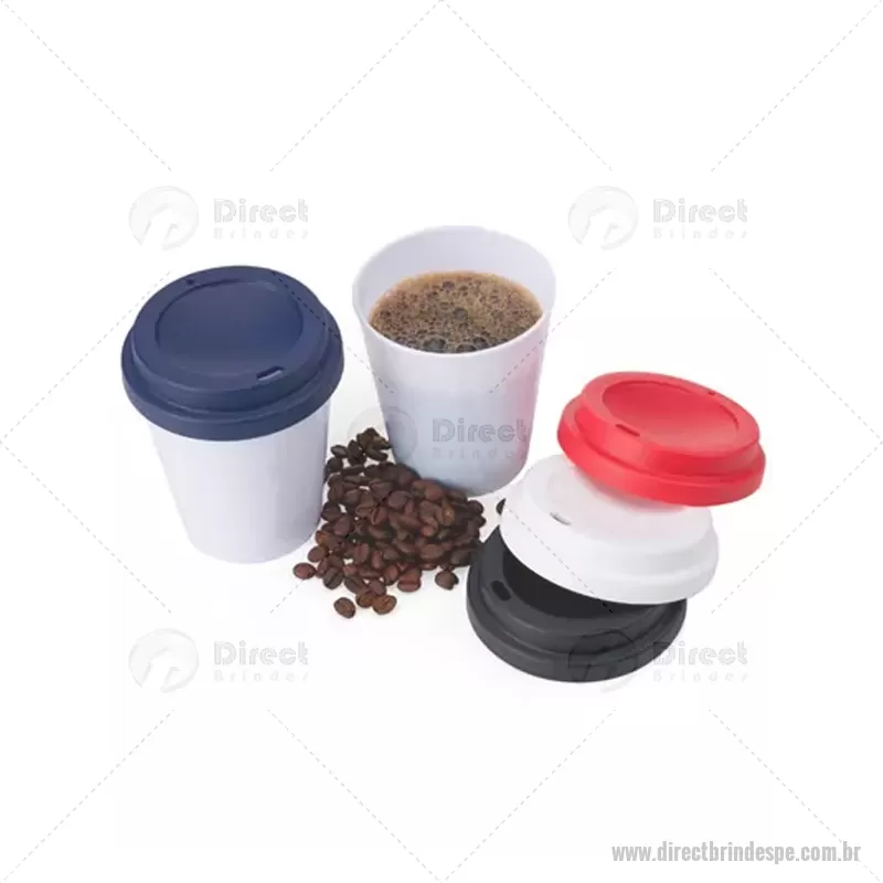 Copo Plástico em PP para café 350ML com tampa. Diversas cores, consultar. - - DRTPECOF002