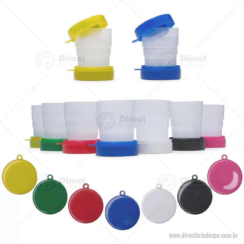 Copo retrátil Personalizável 200ml de plástico com tampa porta comprimido e base colorida. Basta puxar para cima para "armar" o copo, possui “suporte” para chaveiro. Na área interna da tampa possui um compartimento para comprimidos, basta rosquear a tampa interna para abrir/fechar. Gravação em silk/tampografia. Tamanho total (CxD): 6,9 cm x 8 cm x 3,4 cm – Aberto 8,4 cm altura - - DRTPECPO018