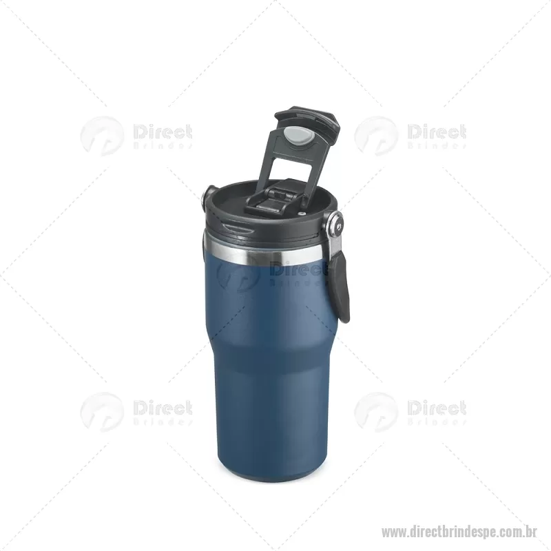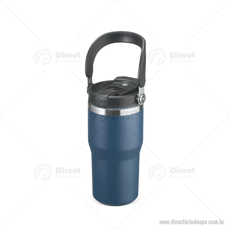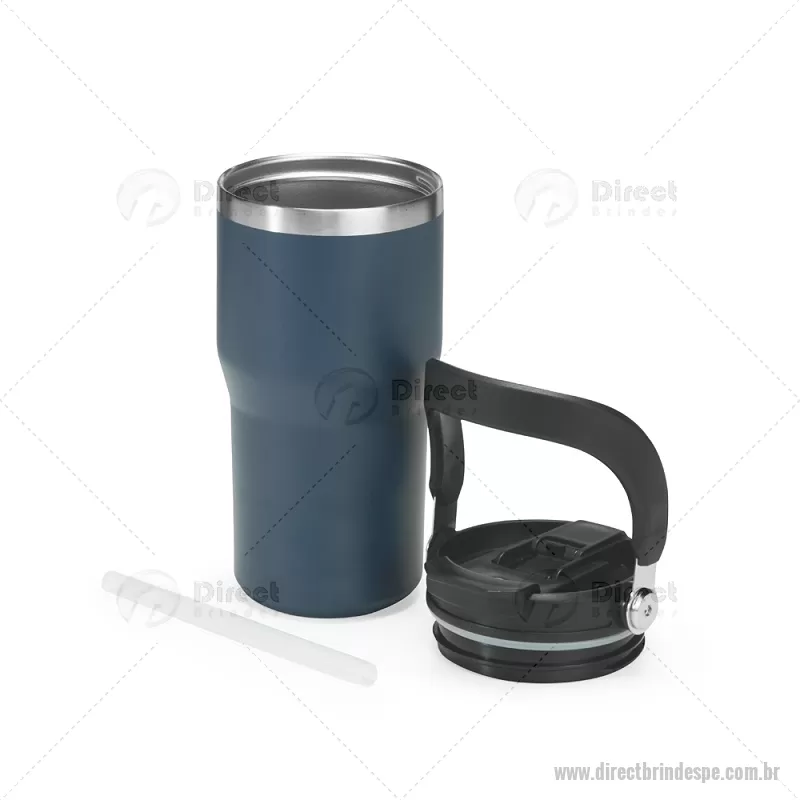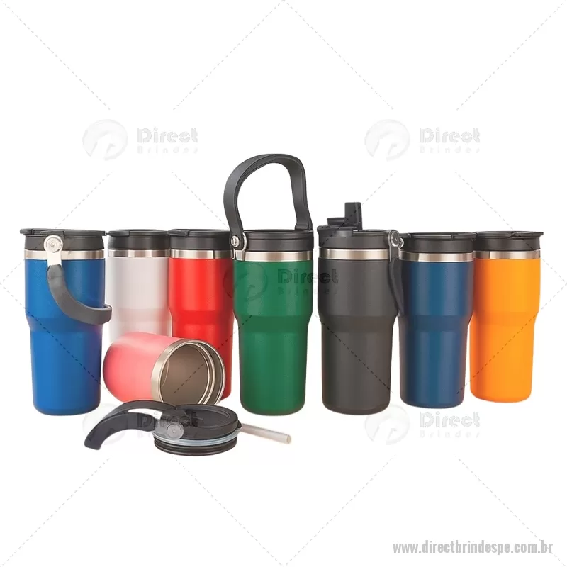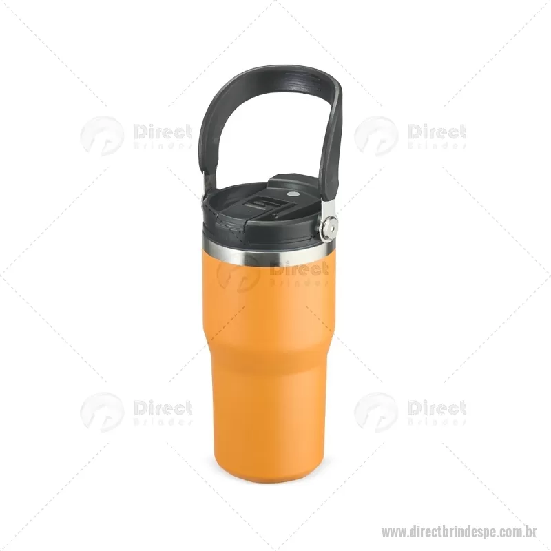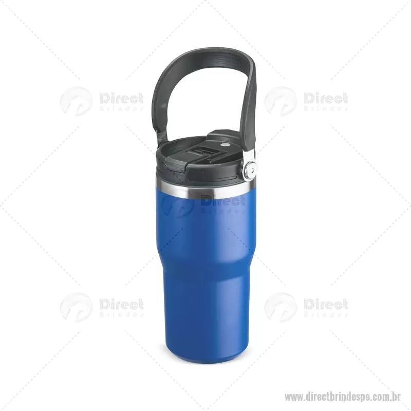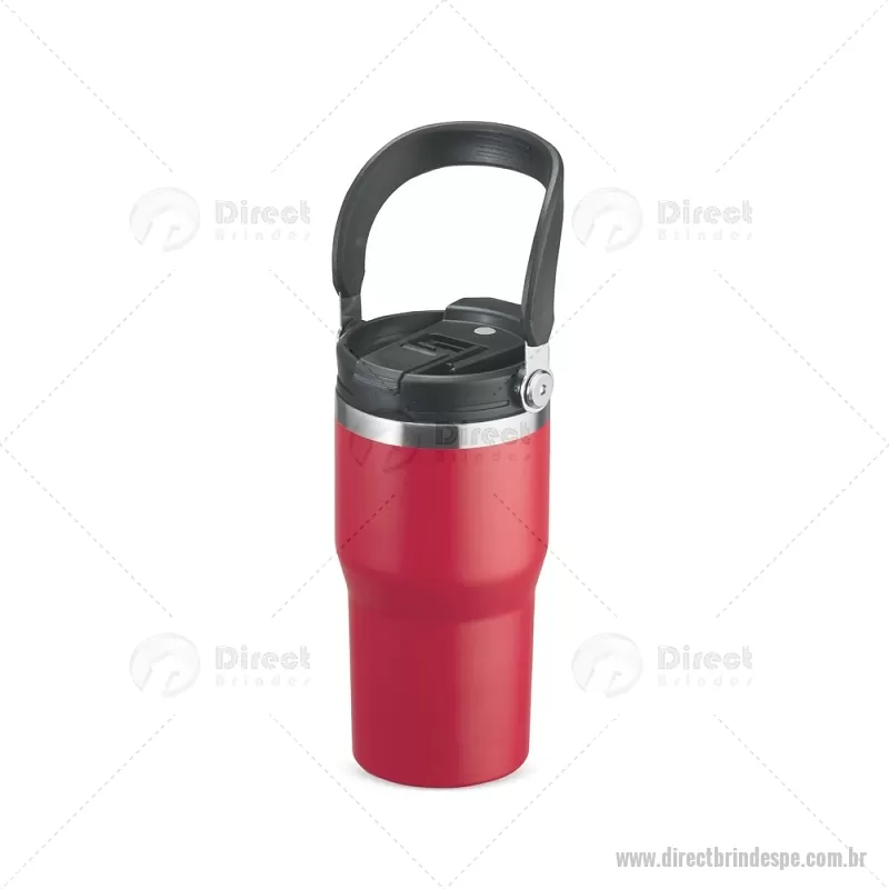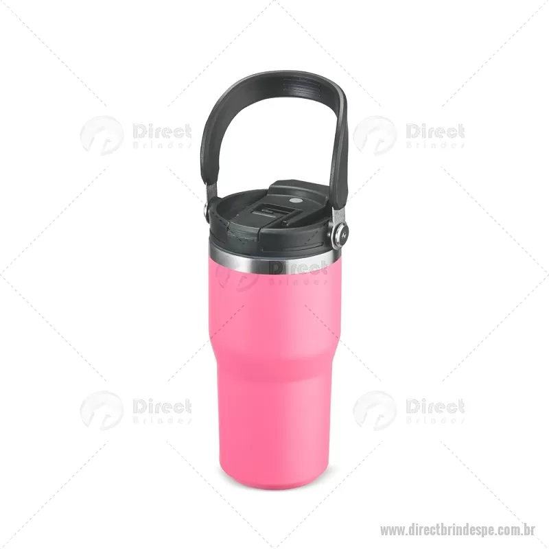 Copo térmico de 600 ml em inox com pintura eletrostática e parede dupla com vedação a vácuo, ideal para manter a temperatura das bebidas por mais tempo. Possui tampa rosqueável com bico flip e proteção para o bocal, canudo interno removível e alça fixa para transporte. Prático e resistente para o dia a dia. - - DRTPECPO149