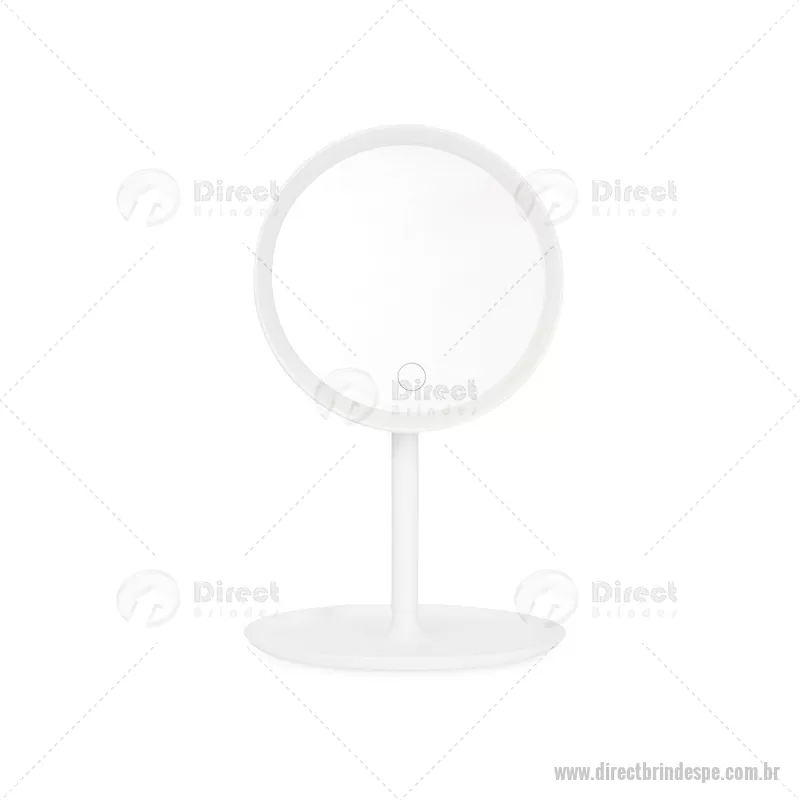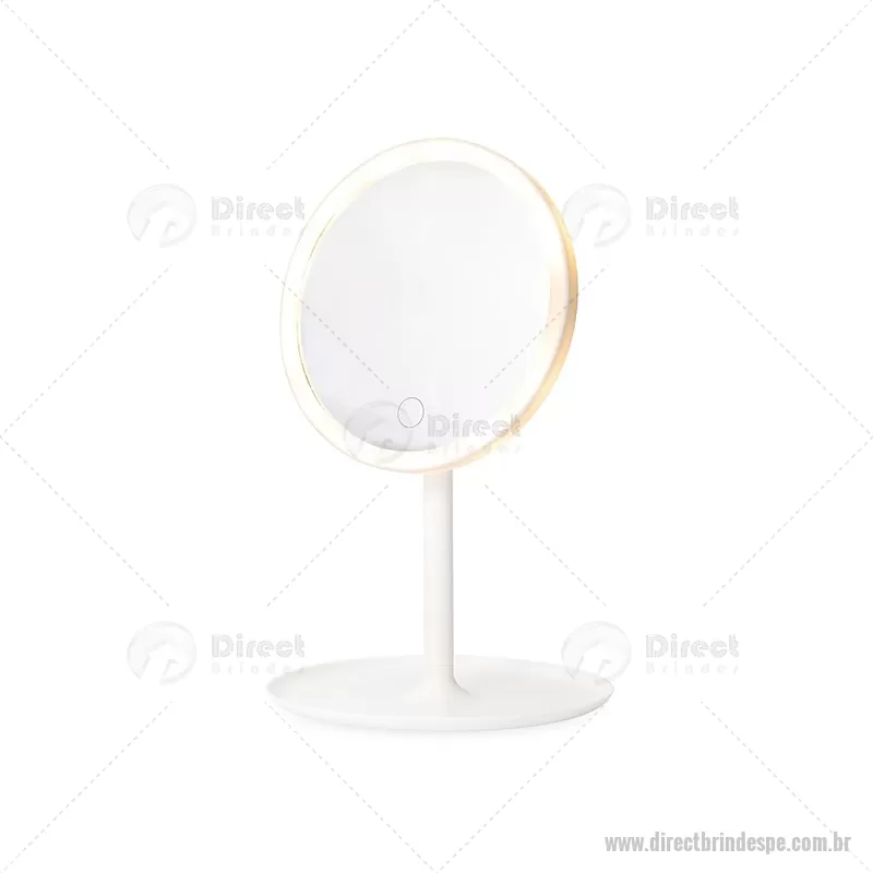 Espelho de Mesa Plástico com LED Descrição: Espelho de mesa com estrutura plástica de fácil montagem e rotação de até 90 graus. Possui iluminação em LED recarregável com três níveis de intensidade ajustáveis pelo botão de toque no espelho. Acompanha cabo USB-C. Altura : 30 cm x Largura : 18,5 cm Tamanho total aproximado (CxL): Diâmetro: 15 cm Peso aproximado (g): 273 - - DRTPEFEM117
