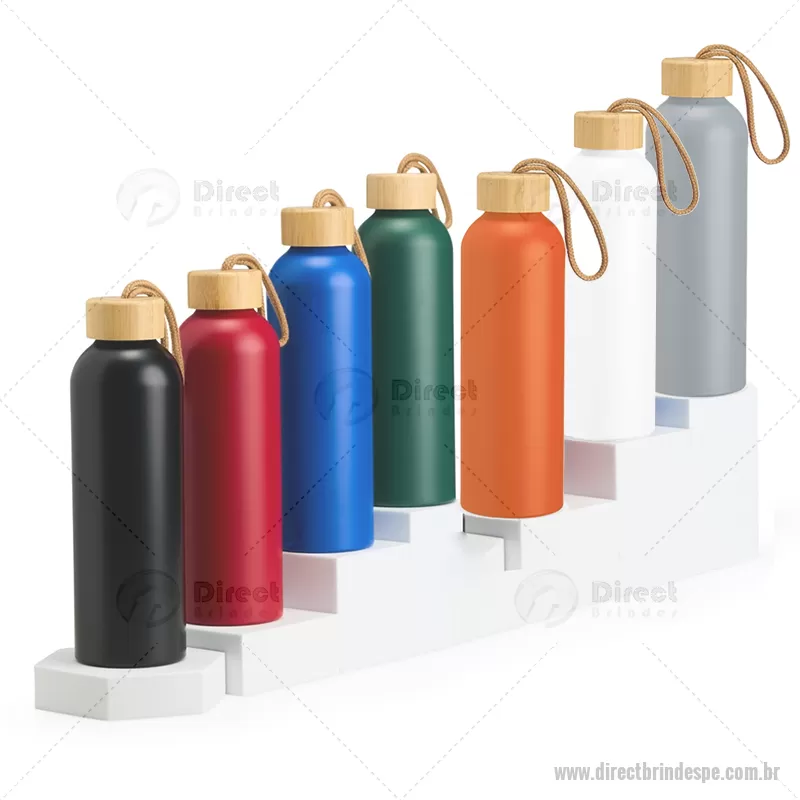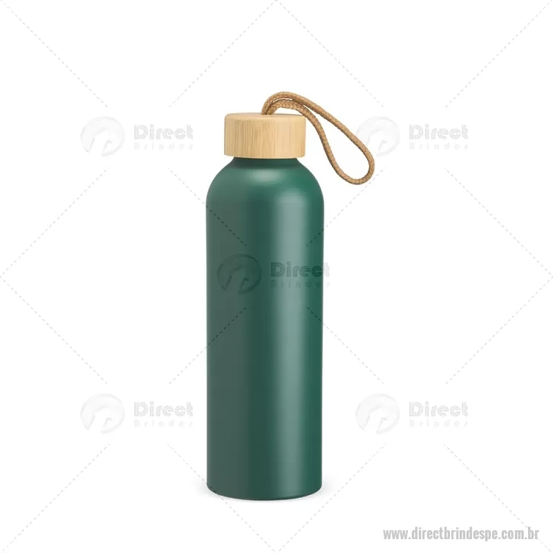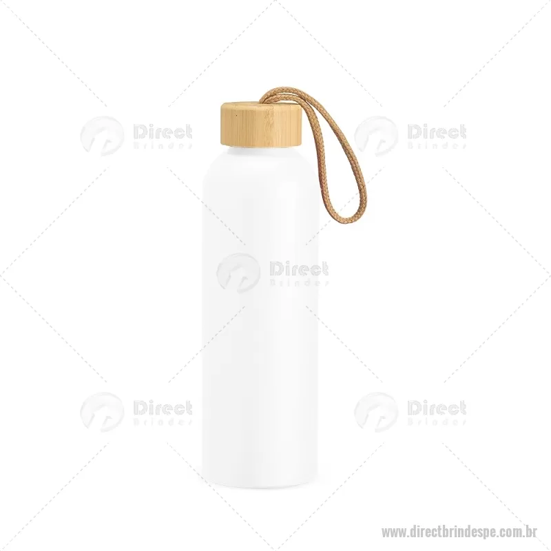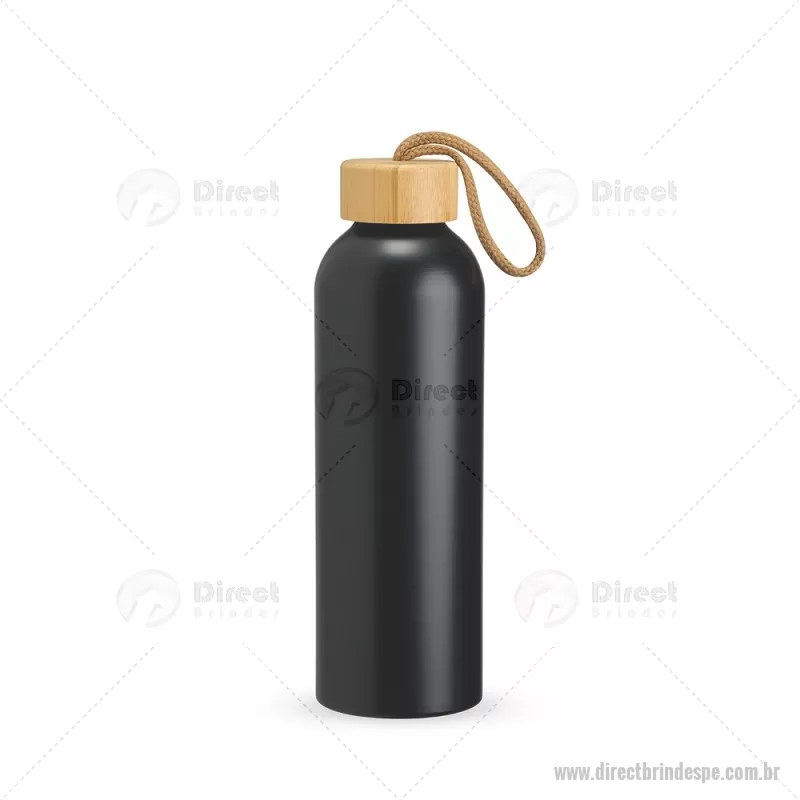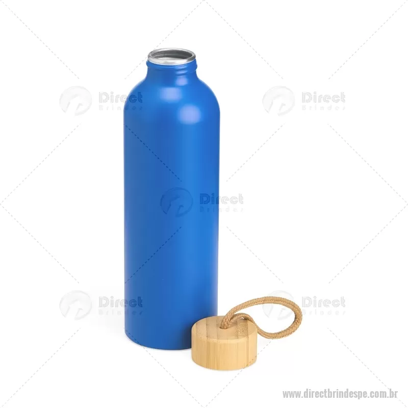 Garrafa em alumínio com capacidade máxima de 800ml. Possui tampa rosqueável em bambu com alça de algodão para facilitar o transporte. Altura : 23,5 cm x Largura : 7 cm x Circunferência : 23 cm Peso aproximado (g): 111 - - DRTPEGAR155