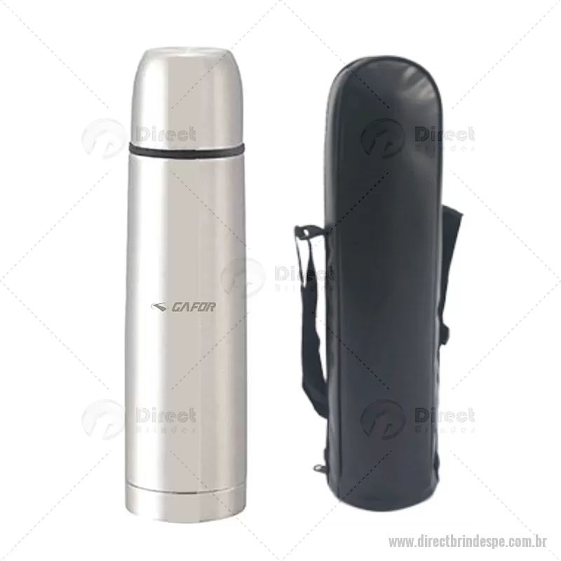 Garrafa 500ml em inox com tampa rosqueável, tampa interna em plástico resistente(basta um clique para abrir ou fechar). Acompanha capa protetora de preta em couro sintético com alça de nylon. Produto NÃO TÉRMICO. - - DRTPEGAR001B