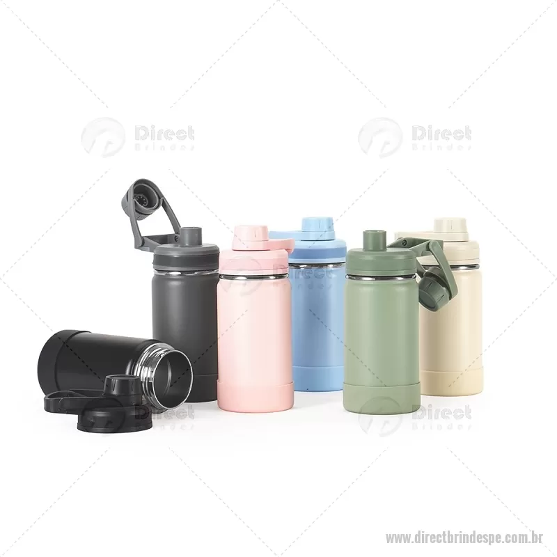 Garrafa Térmica 350ml Descrição: Garrafa térmica em inox, pintura eletrostática e capacidade para até 350ml. Conta com estrutura de parede dupla e vedação a vácuo, permitindo conservar a temperatura de líquidos por mais tempo. Possui tampa rosqueável com protetor para o bocal e alça fixa para facilitar o transporte. Acompanha protetor para a base em silicone. Altura : 18,2 cm x Largura : 10 cm x Circunferência : 23 cm Peso aproximado (g): 238 - - DRTPEGAT158