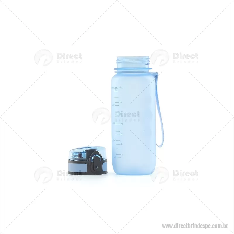Squeeze plástico com capacidade de 550ml. Possui tampa rosqueável protetora com trava de segurança e botão de acionamento. Squeeze com acabamento fosco, detalhes ondulado e alça de nylon para transporte. - - DRTPESQP105
