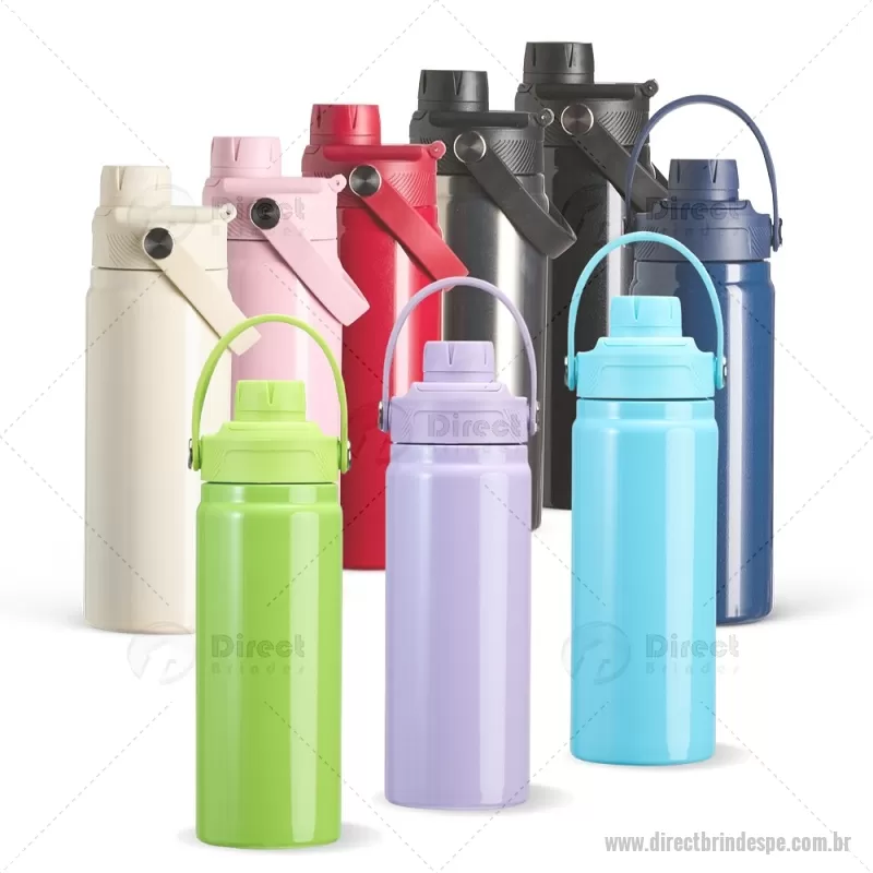 Garrafa térmica em inox com capacidade de até 600ml. Apresenta estrutura com parede dupla e isolamento a vácuo, permitindo conservar a temperatura de líquidos por mais tempo. Possui tampa plástica rosqueável com protetor de o bocal e alça fixa para facilitar o transporte — perfeita para acompanhar sua rotina com conforto, resistência e estilo. Altura : 23 cm x Largura : 8 cm x Circunferência : 23,3 cm Peso aproximado (g): 289 - - DRTPEGAT167